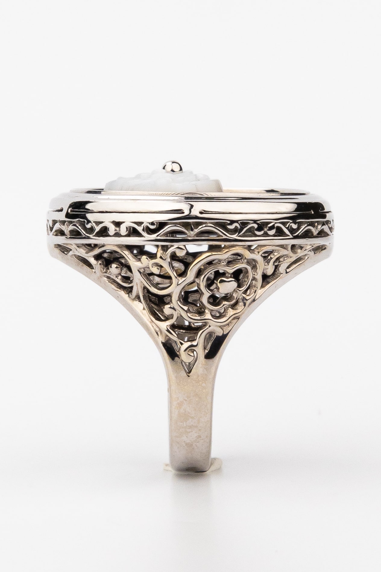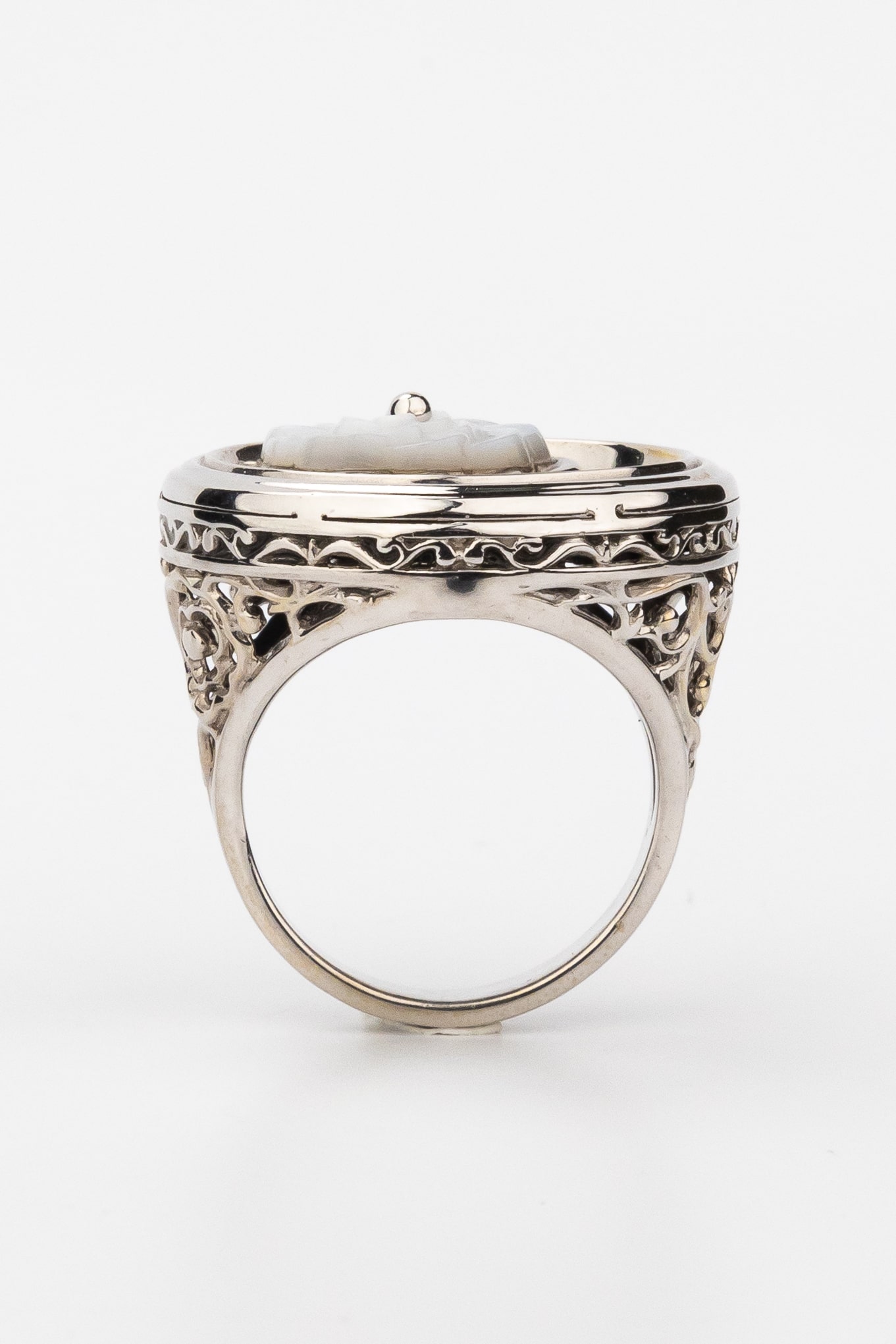 Кольцо из белого золота c ониксом и перламутром