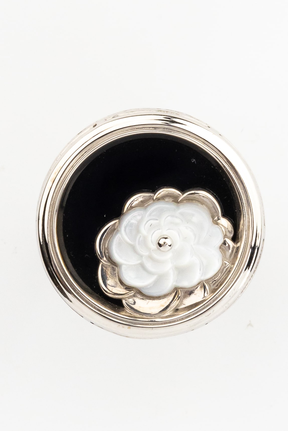 Кольцо из белого золота 585 пробы из коллекции De Luxe — Роза станет изысканным акцентом вашего образа. Дизайн украшения, вдохновленный классическим образом розы, воплощает в себе гармоничное сочетание строгости и элегантности. Центральным элементом композиции является изящная вставка круглой формы: на глубоком черном фоне оникса расцветает нежный перламутр, создавая выразительный контраст и игру света.