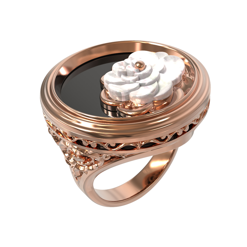 Кольцо из красного золота 585 пробы c ониксом и перламутром