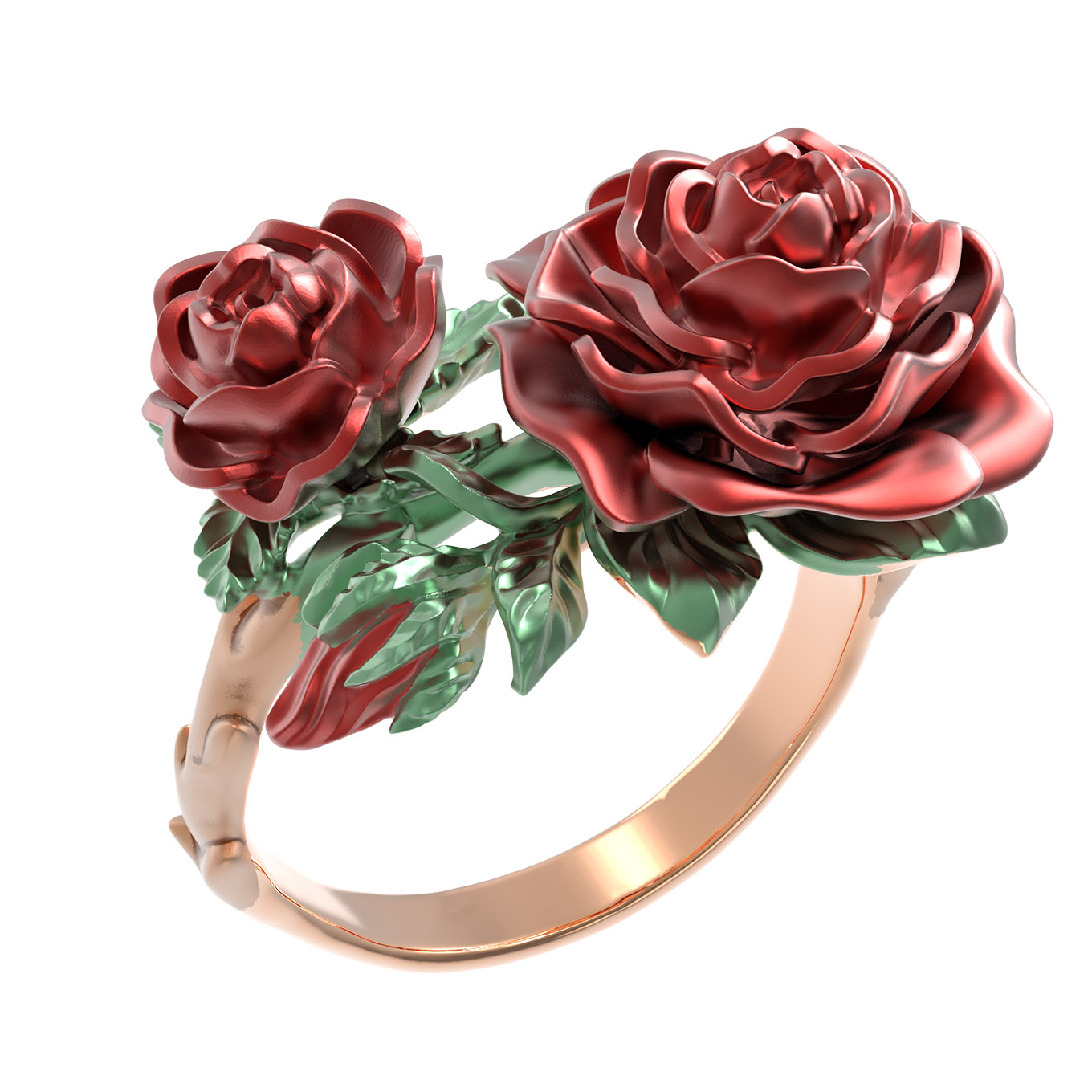 Кольцо из красного золота 585 пробы из коллекции De Luxe — Кармен — это воплощение ювелирного мастерства, вдохновленное природной эстетикой. Дизайн изделия выполнен в виде нежных цветов, где две распустившиеся розы привлекают внимание своей детальной проработкой и глубоким цветом материала. Это украшение станет выразительным акцентом образа, подчеркивая утонченный вкус и любовь к эксклюзивным деталям.