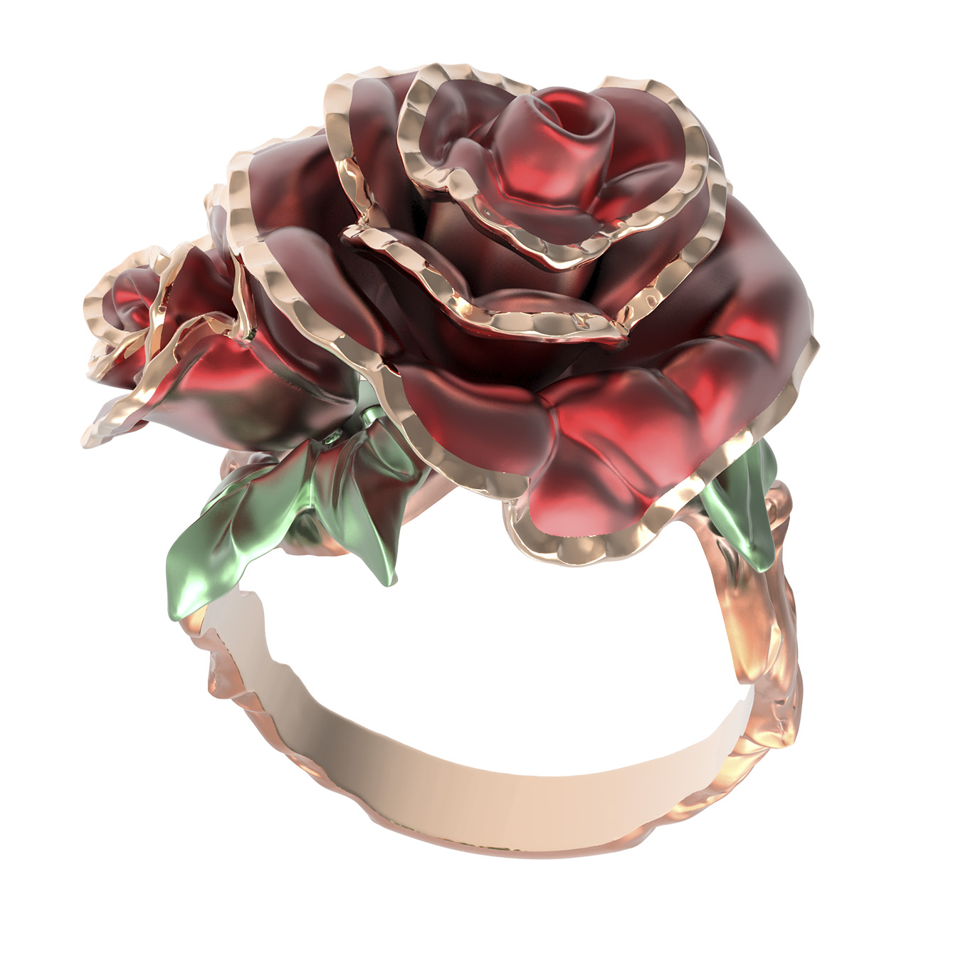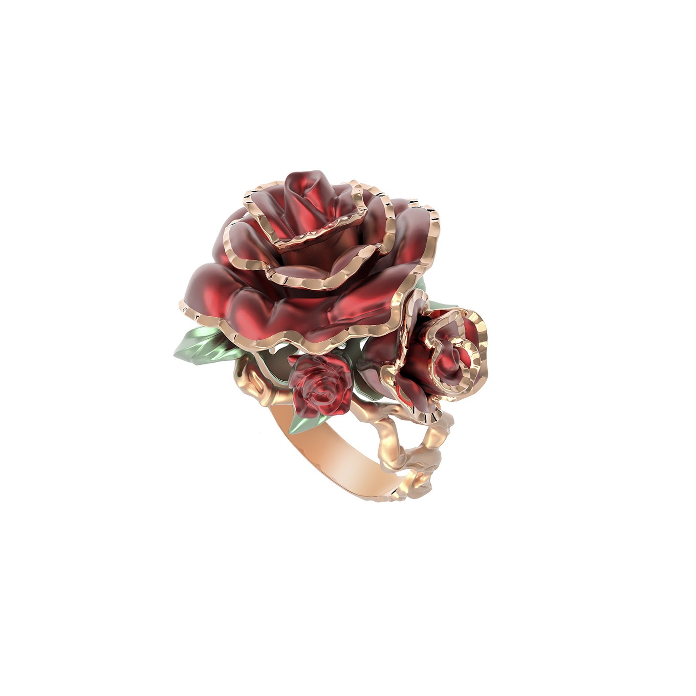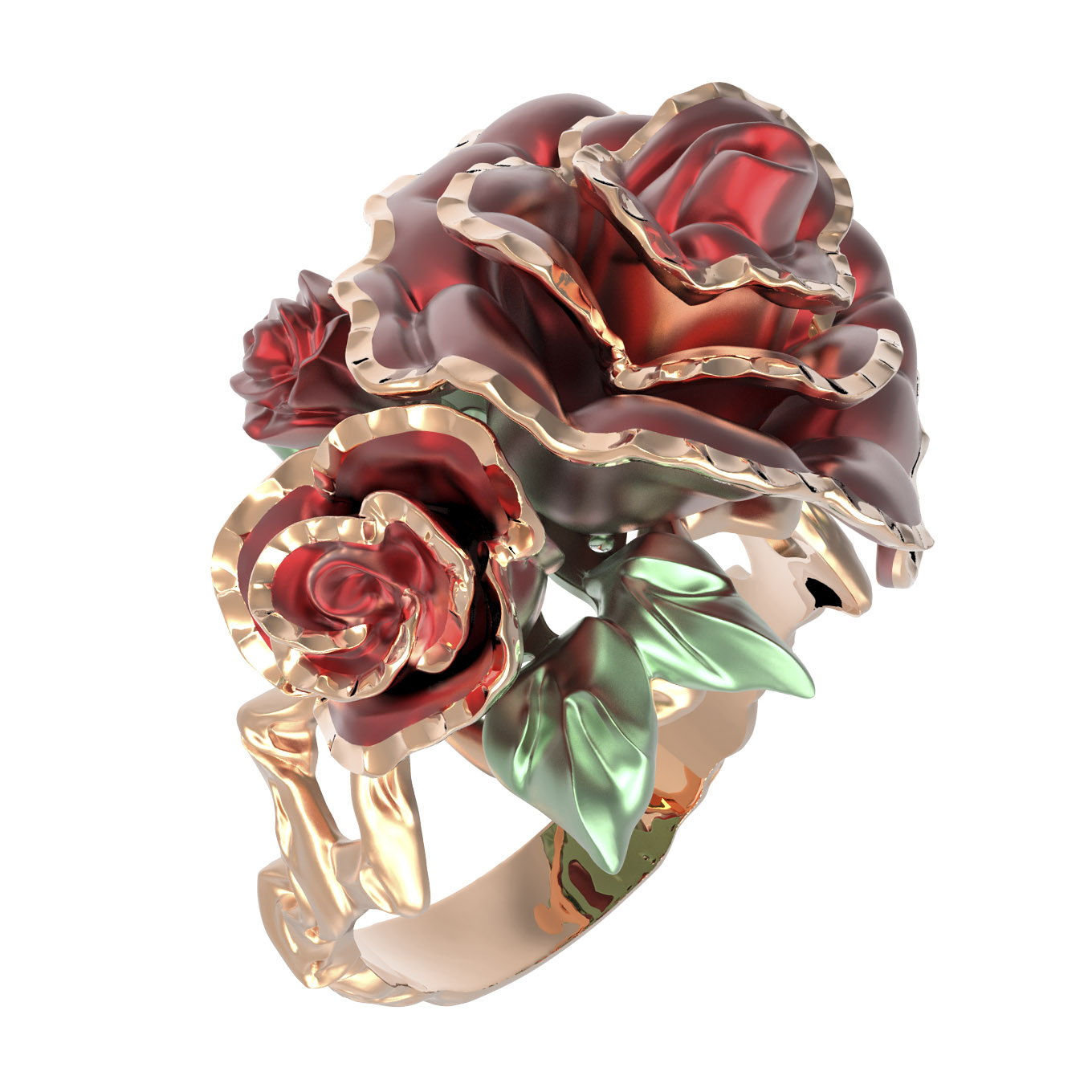 Роскошное кольцо из коллекции De Luxe — Кармен — это настоящее произведение ювелирного искусства, вдохновленное нежной красотой природы. Изделие выполнено из красного золота 585 пробы, которое идеально подчеркивает теплоту и глубину дизайна. В центре композиции находится изящный цветочный мотив: мастерски проработанные бутоны роз привлекают внимание своей детальностью и мягкими линиями.