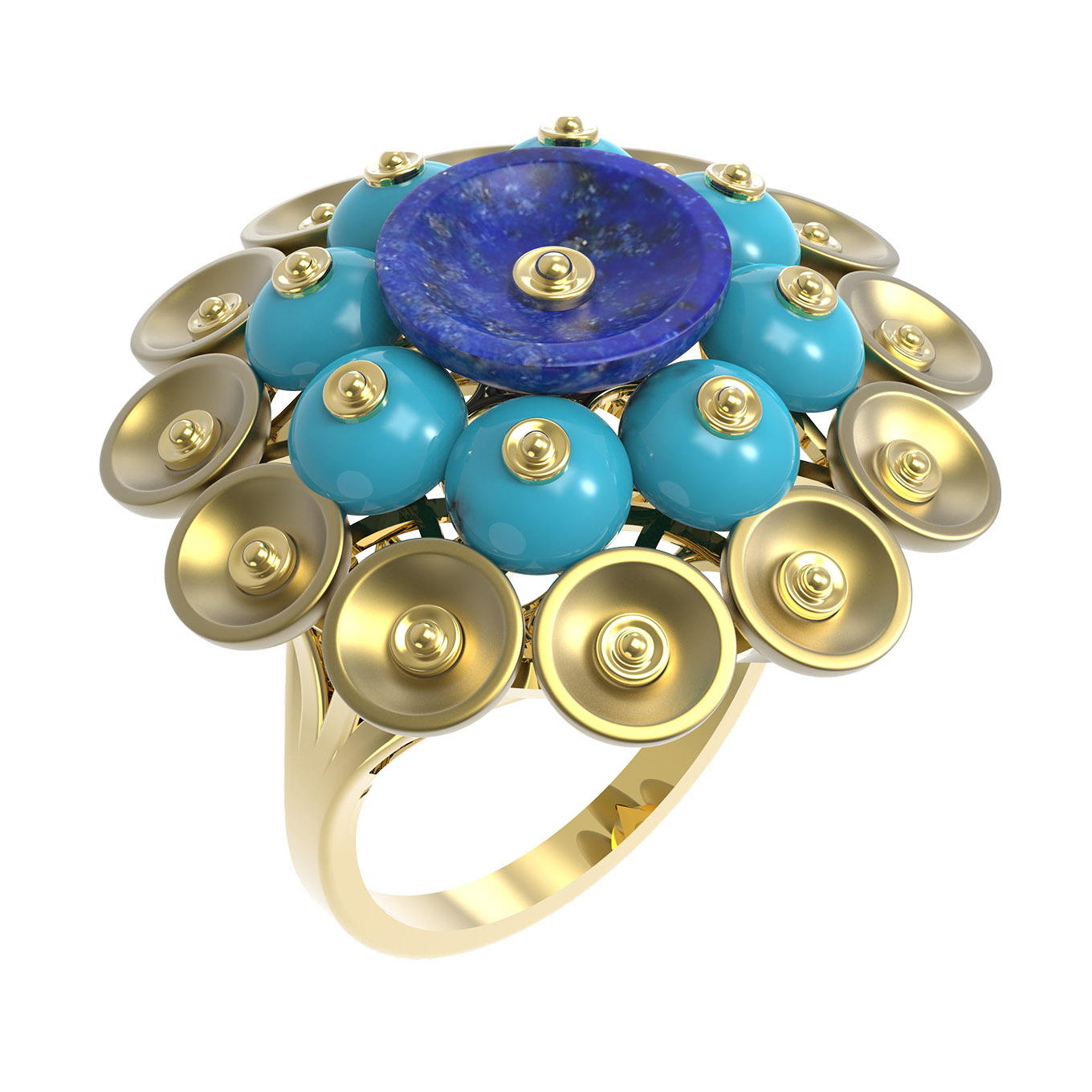Кольцо из лимонного золота c бирюзой и лазуритом