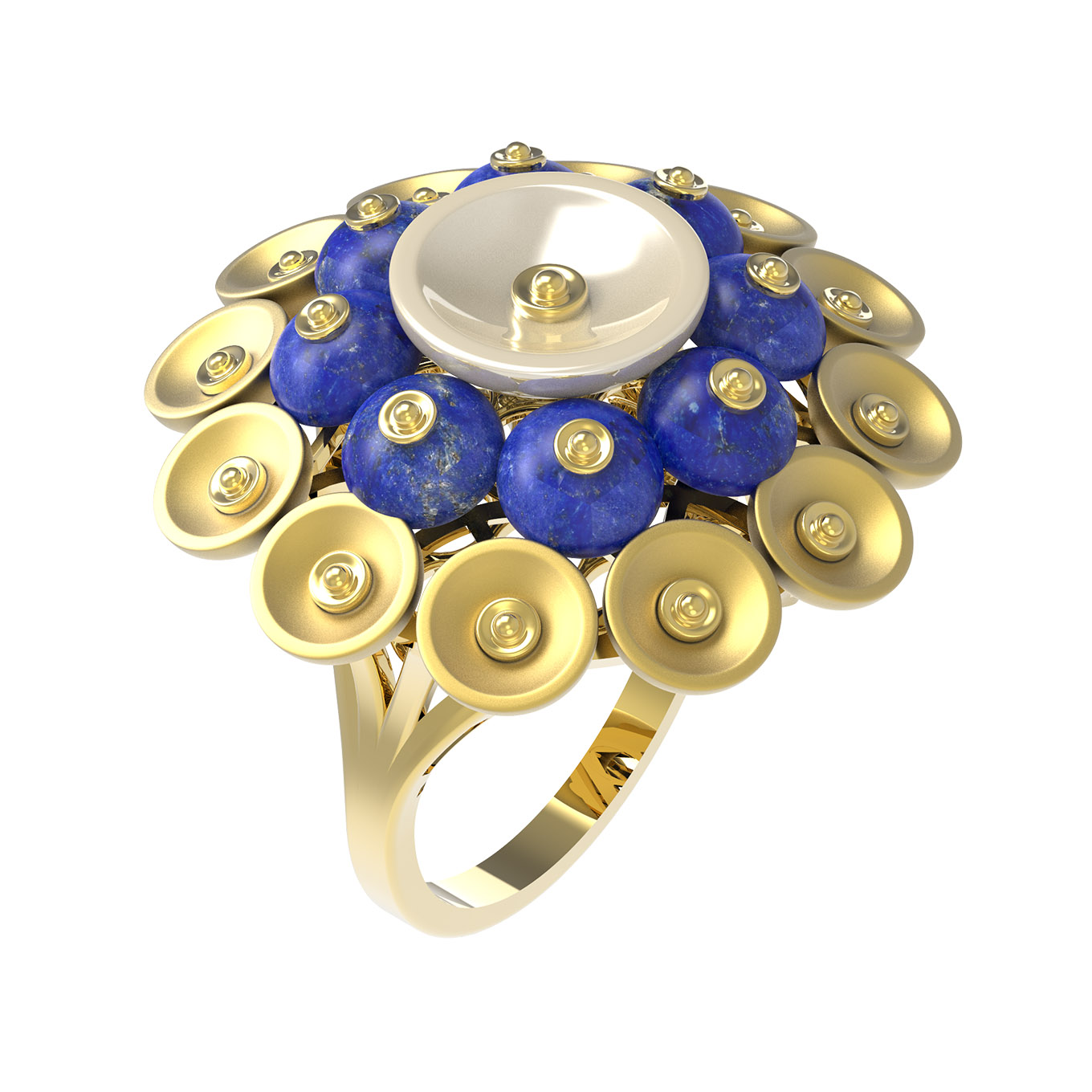 Кольцо из лимонного золота 585 пробы c лазуритом и перламутром