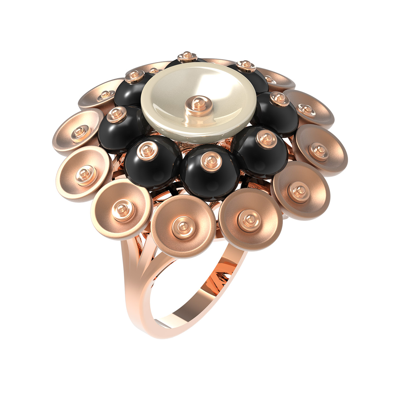 Кольцо из красного золота 585 пробы c ониксом и перламутром