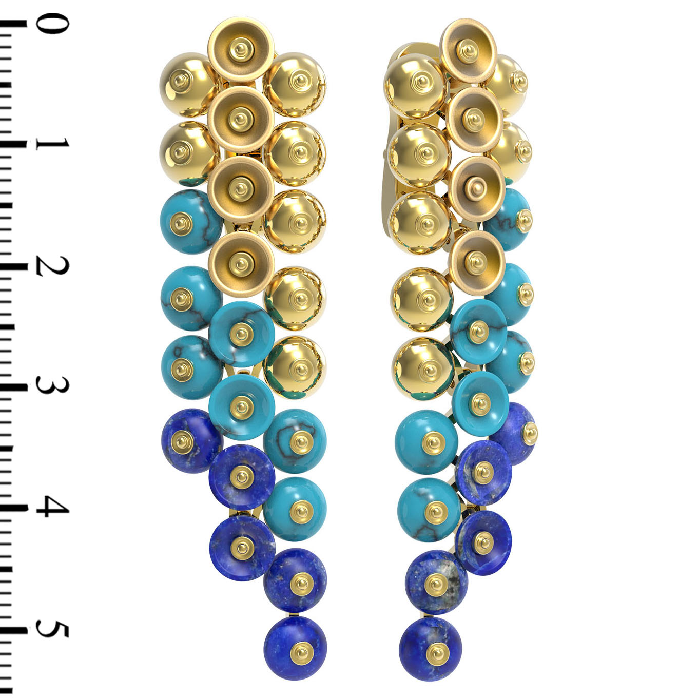 Серьги из лимонного золота 585 пробы c бирюзой и лазуритом