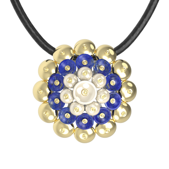 Подвеска из лимонного золота c лазуритом и перламутром