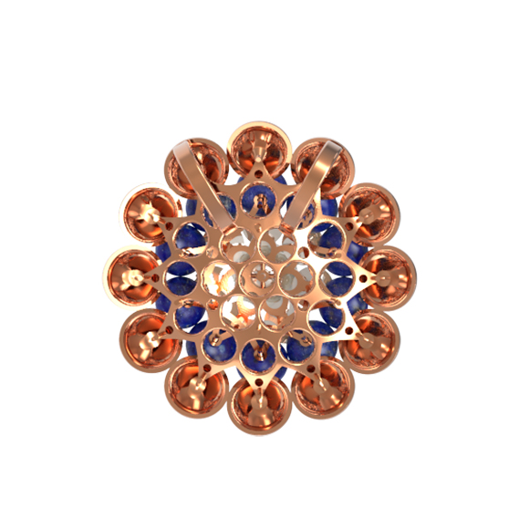 Эффектная подвеска из коллекции De Luxe — Симфония станет воплощением вашего безупречного вкуса и любви к нестандартным дизайнерским решениям. Ювелирное изделие выполнено из красного золота 585 пробы, чей теплый оттенок гармонично сочетается с выразительной инкрустацией. Основа композиции выстроена на контрасте фактур и глубоких оттенков: центральным элементом выступает нежный перламутр, который обрамляют насыщенные синие бусины из лазурита. В общей сложности модель насчитывает 10 вставок, образующих сложный, геометрически выверенный орнамент, напоминающий распустившийся цветок.