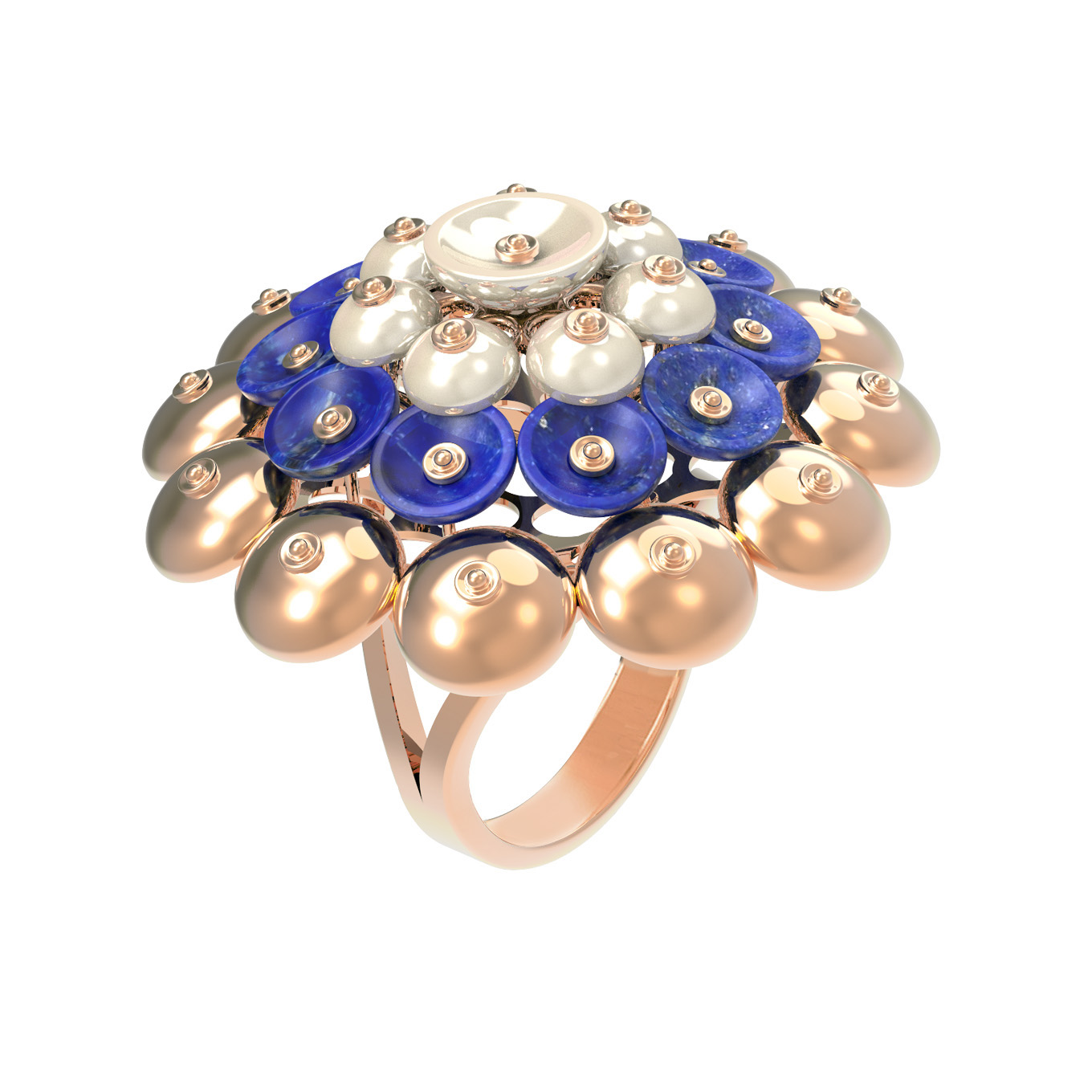 Кольцо из красного золота 585 пробы c лазуритом и перламутром
