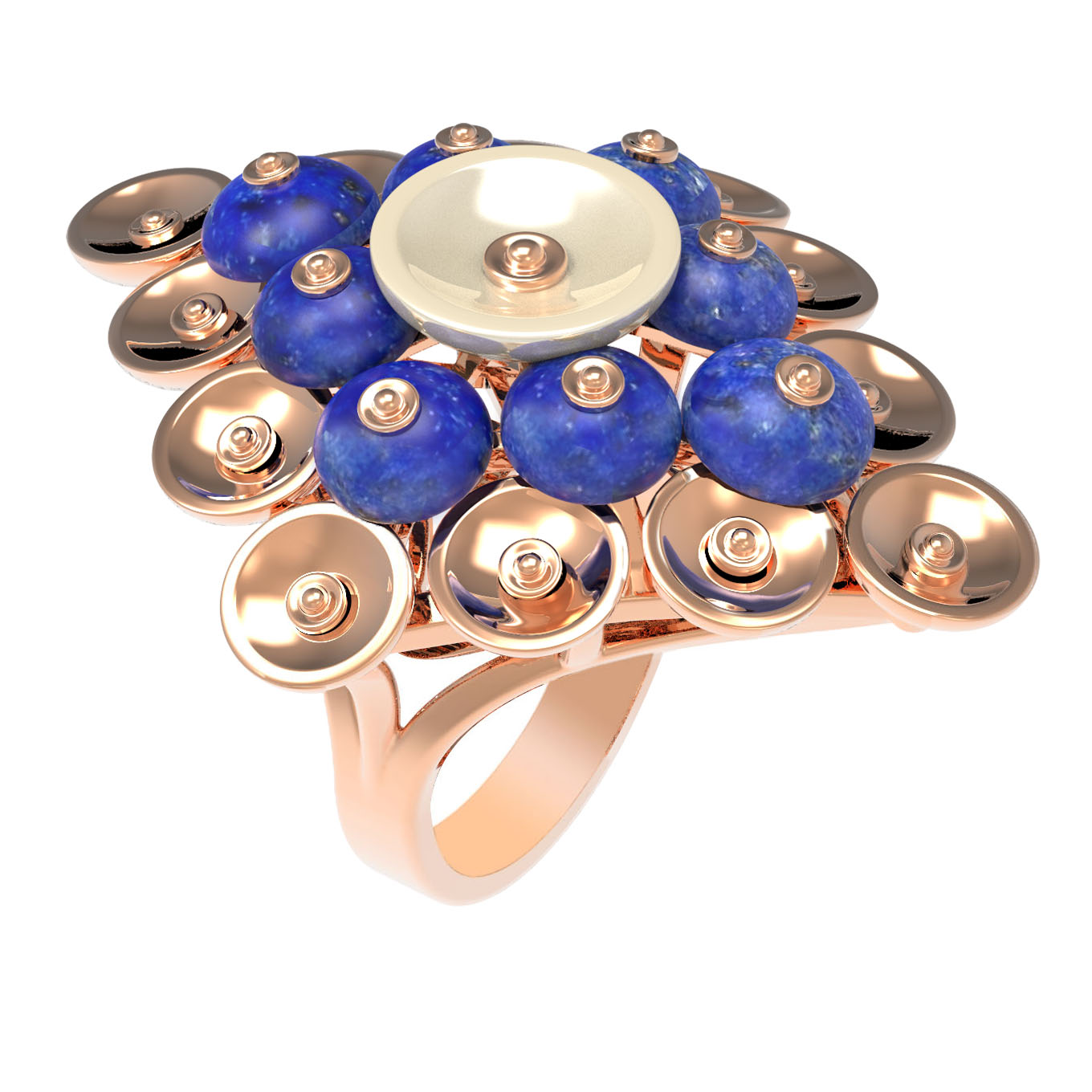 Кольцо из красного золота 585 пробы c лазуритом и перламутром