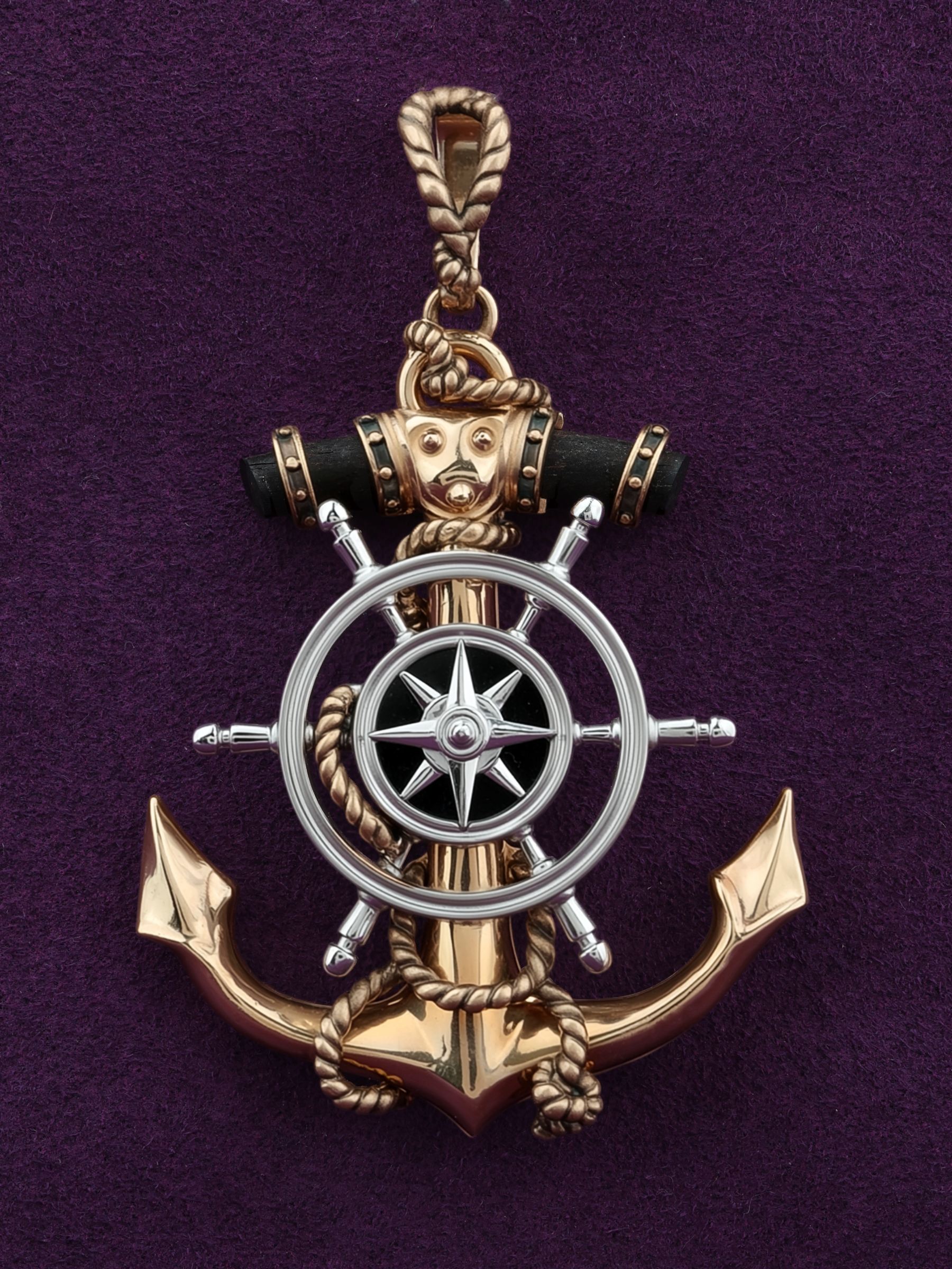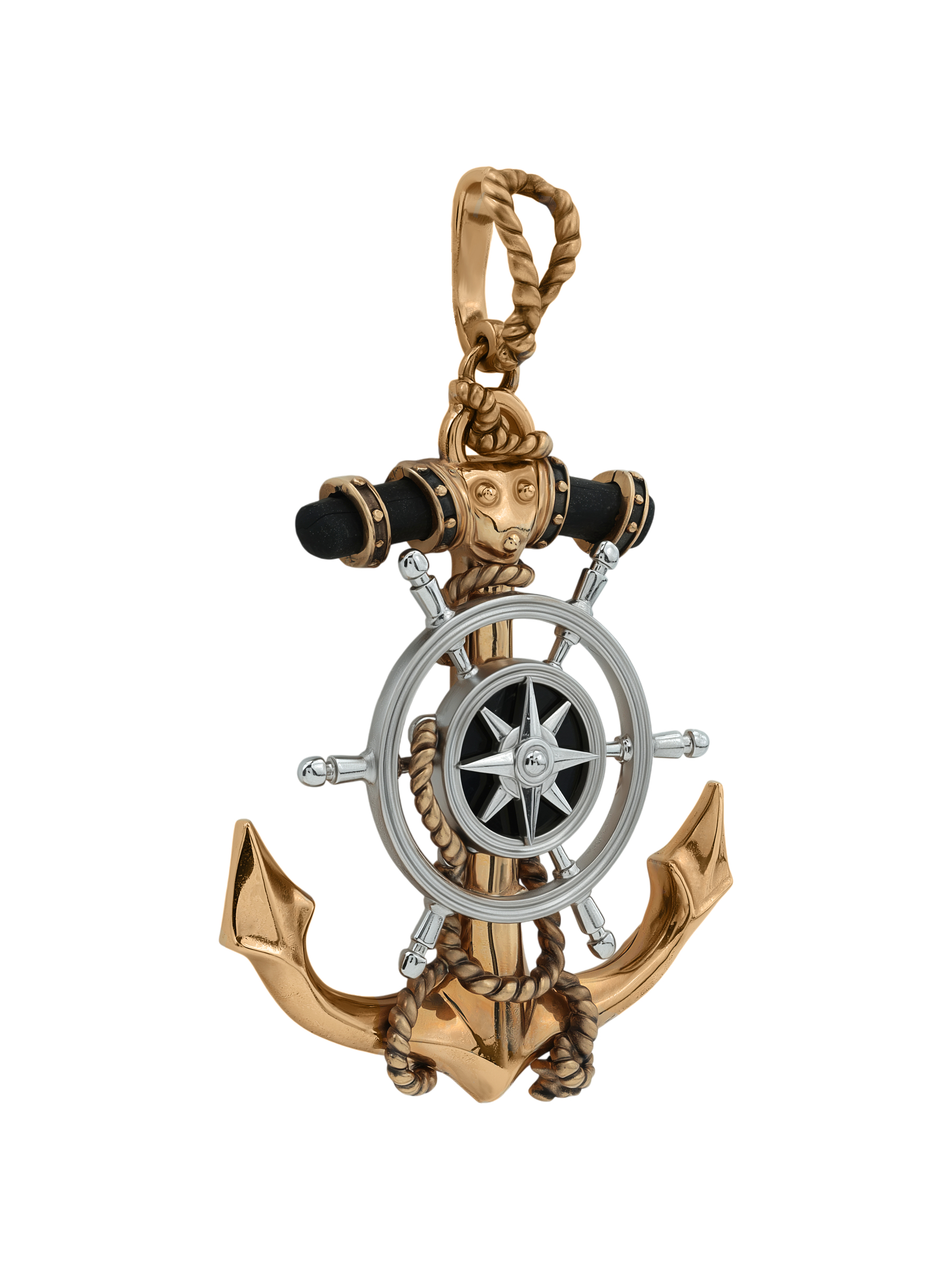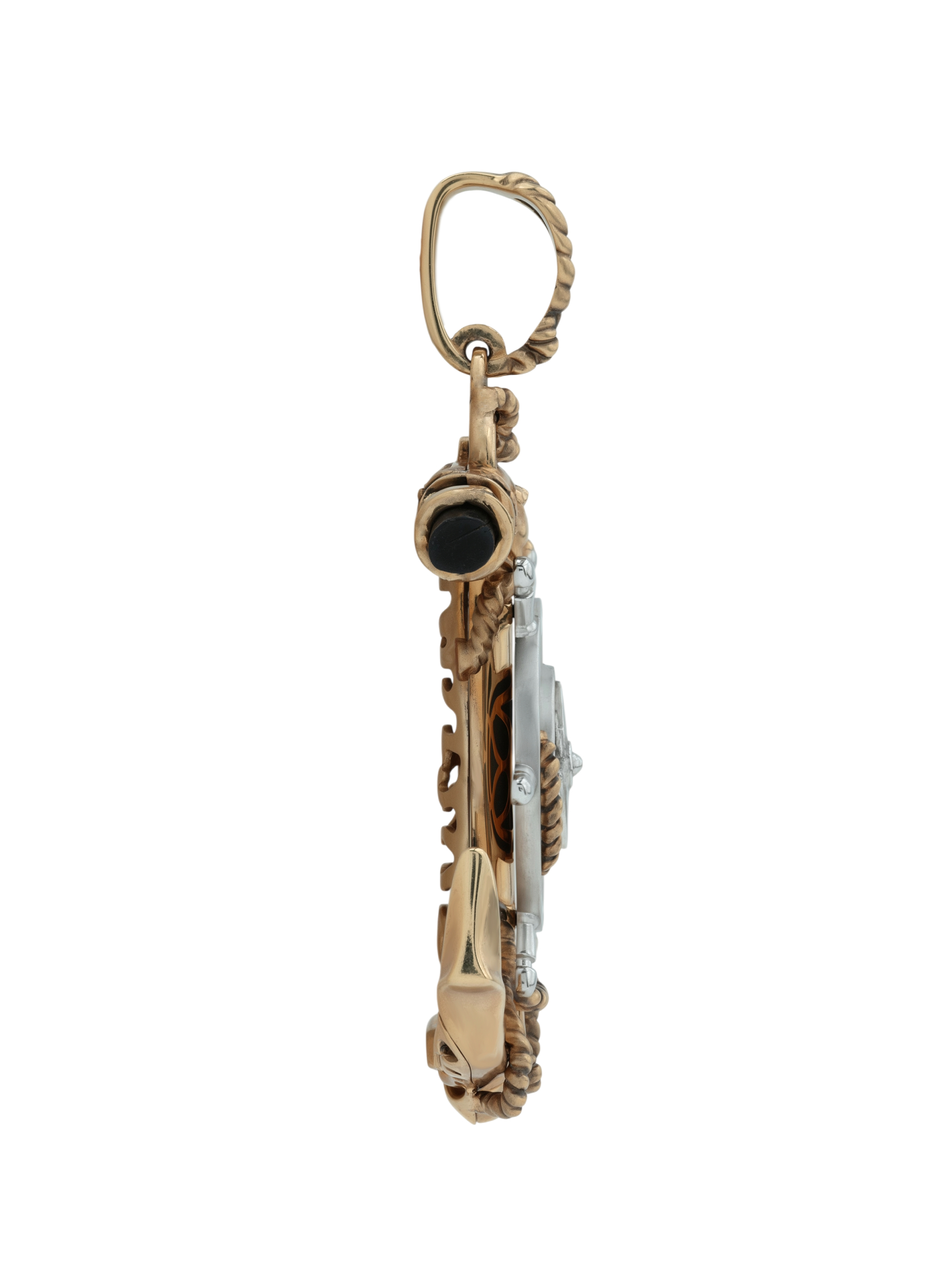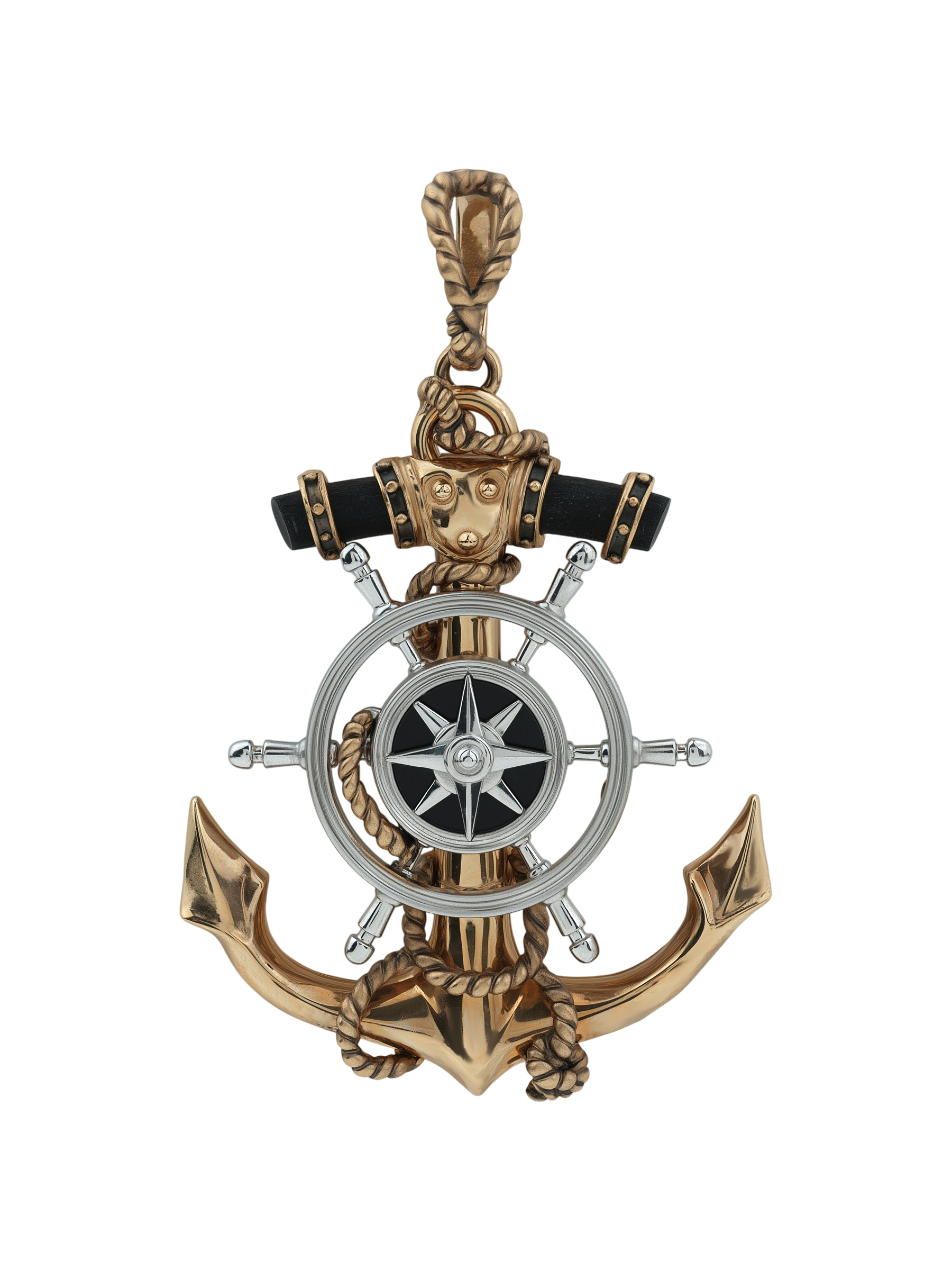 Подвеска из красного золота 585 пробы c ониксом и эбеновым деревом