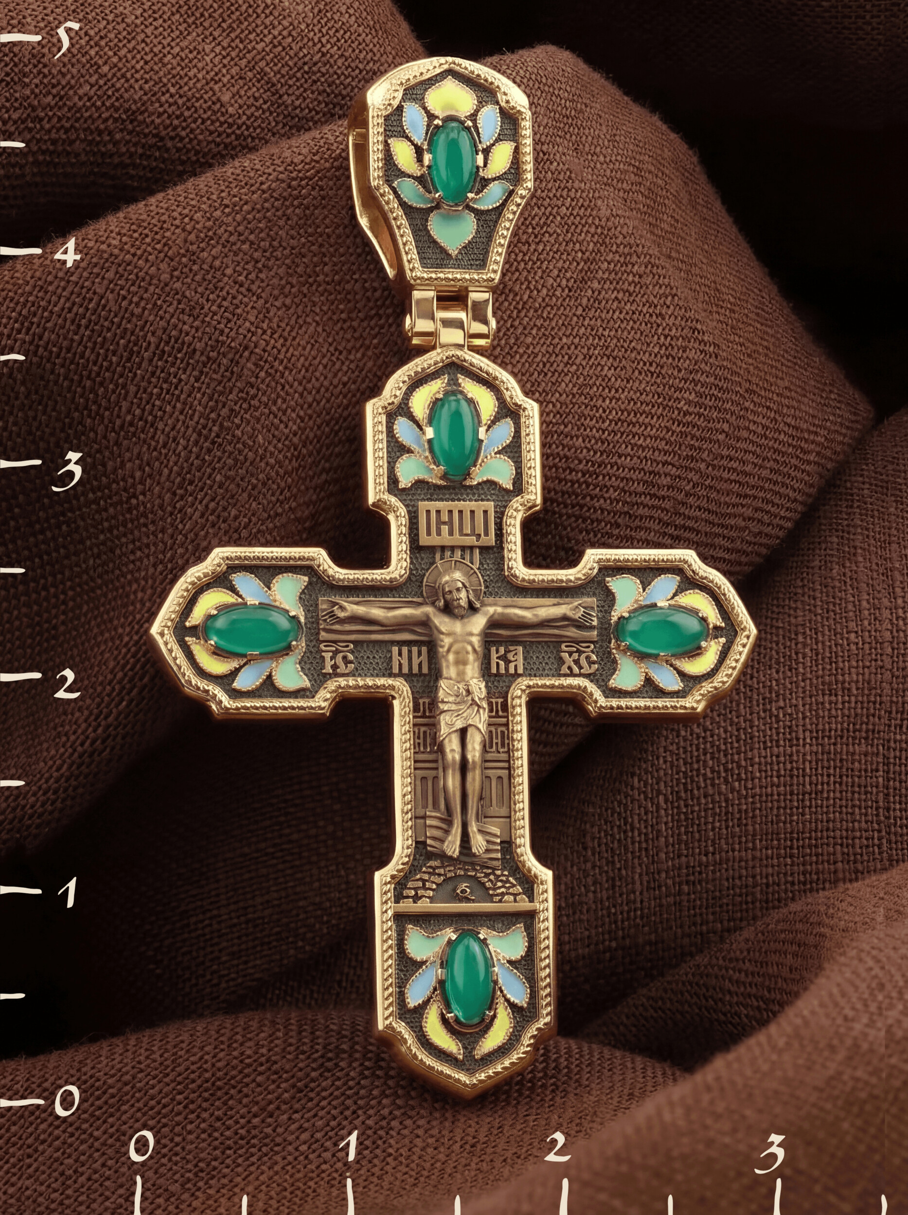 Крест из золота c эмалью и хризопразом