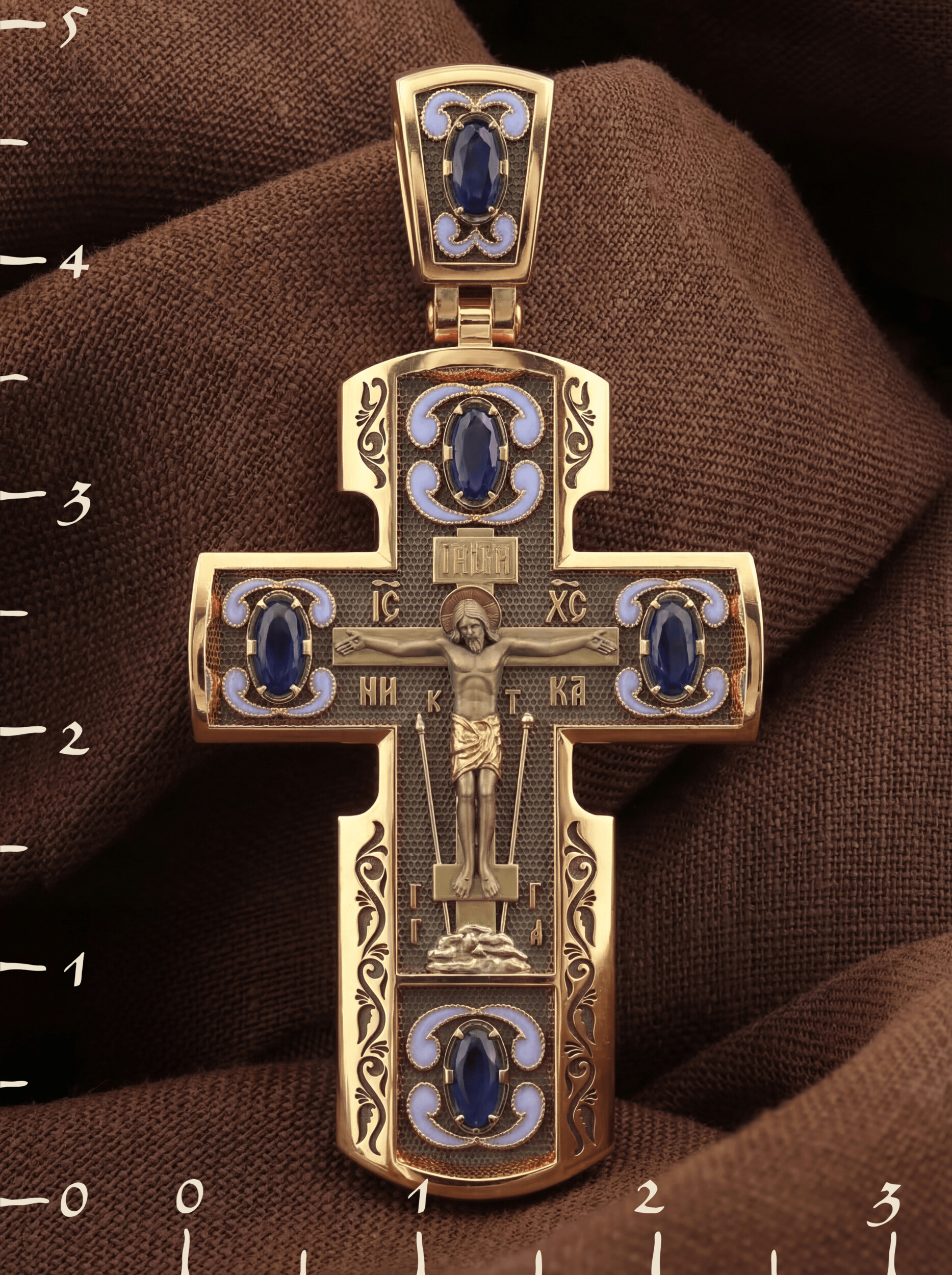 Крест из золота c эмалью и сапфиром