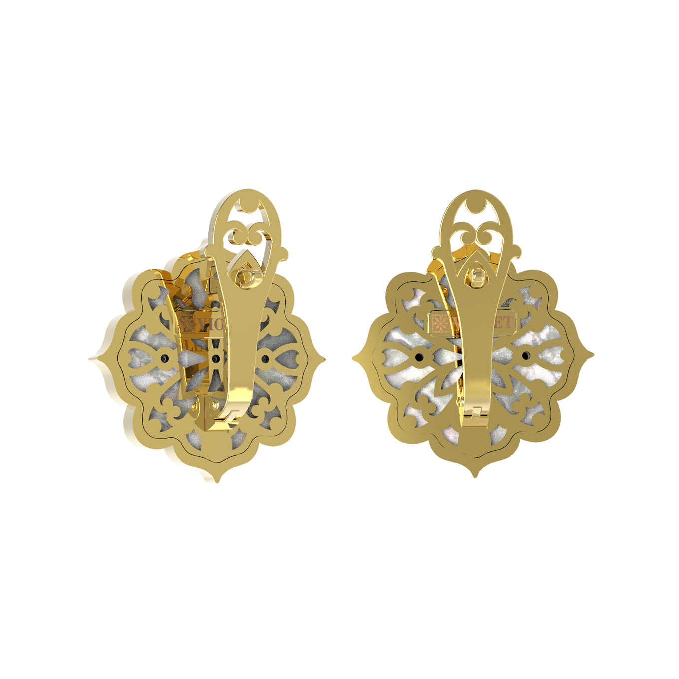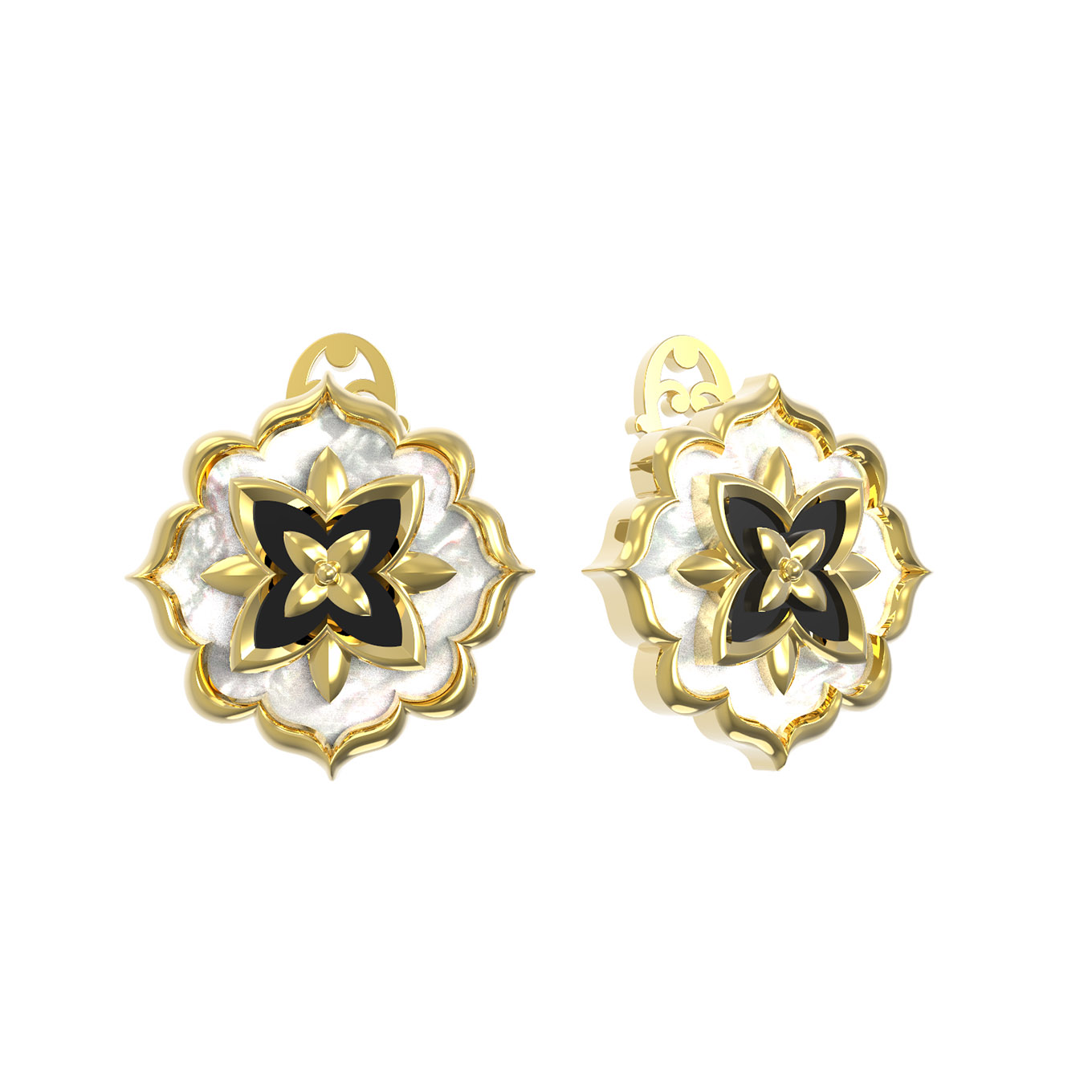 Серьги из лимонного золота 585 пробы c ониксом и перламутром