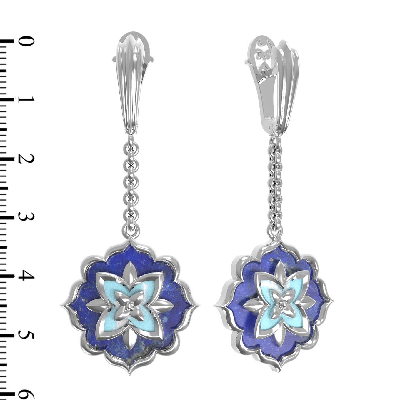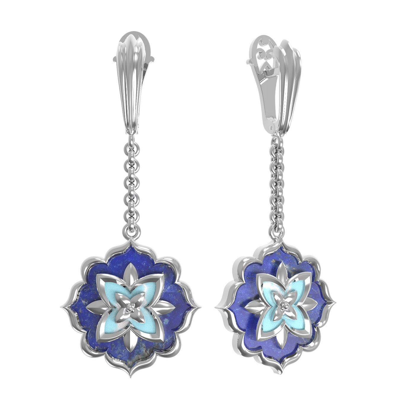 Серьги из белого золота 585 пробы c бирюзой и лазуритом