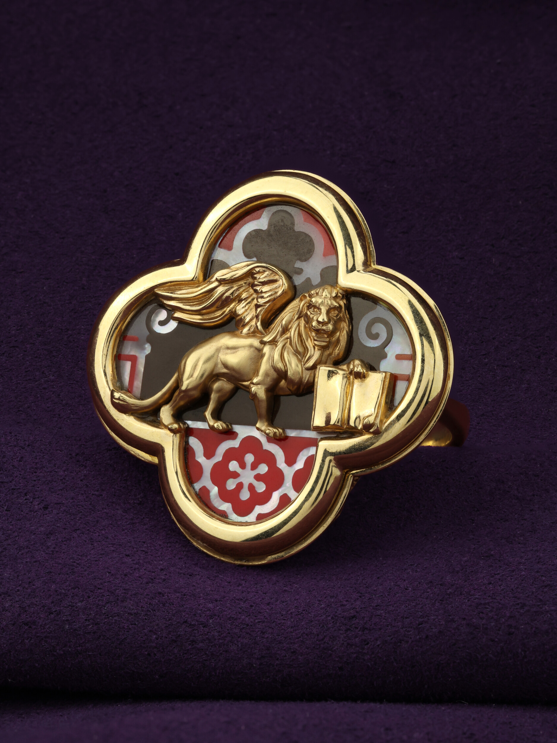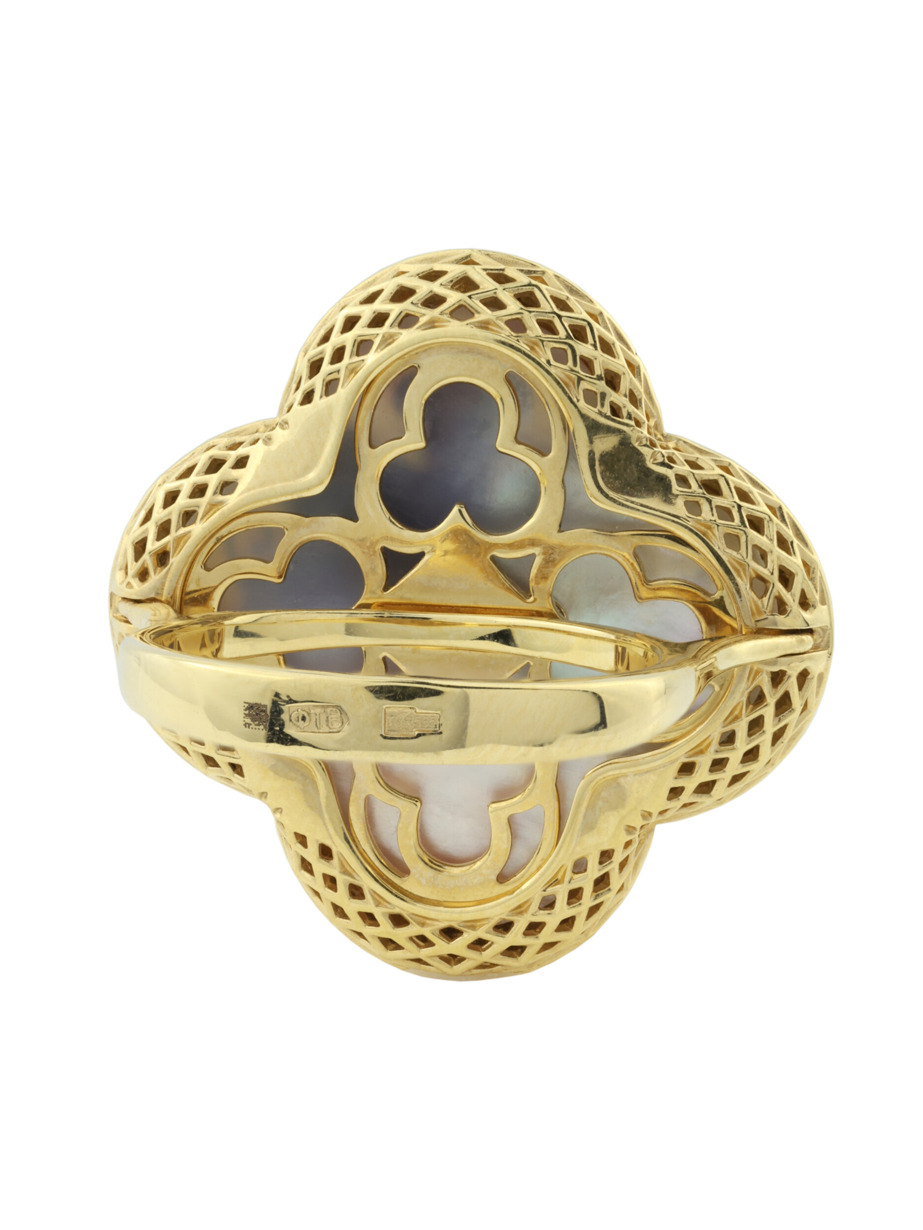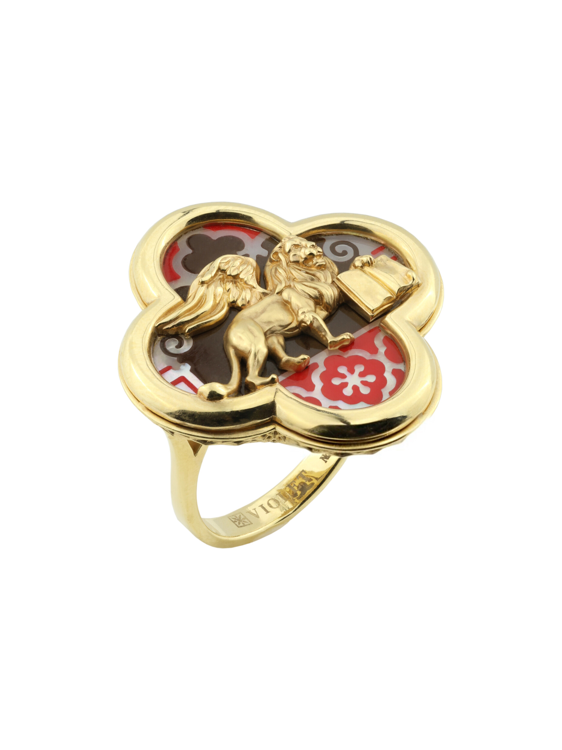 Кольцо из лимонного золота 585 пробы c эмалью и перламутром