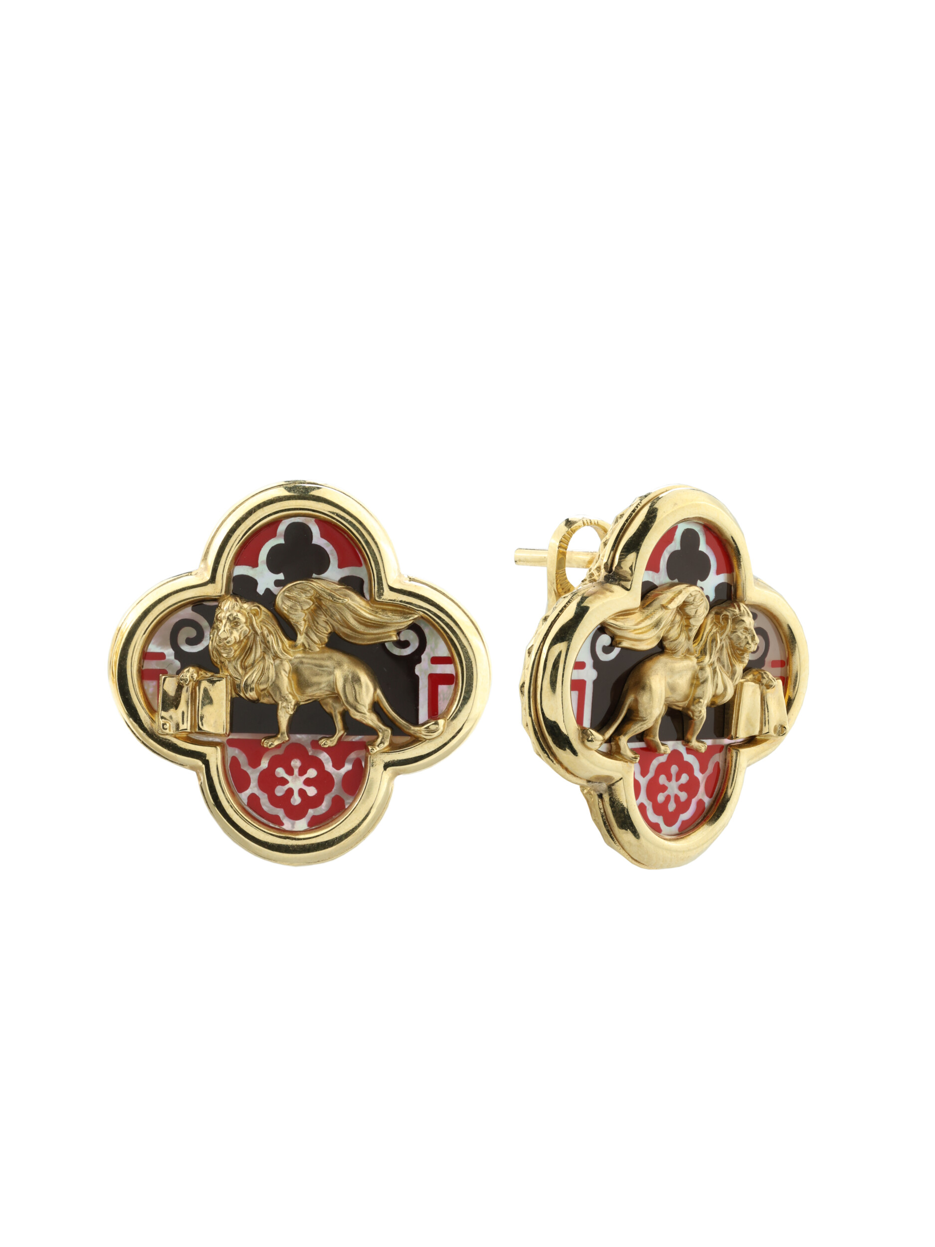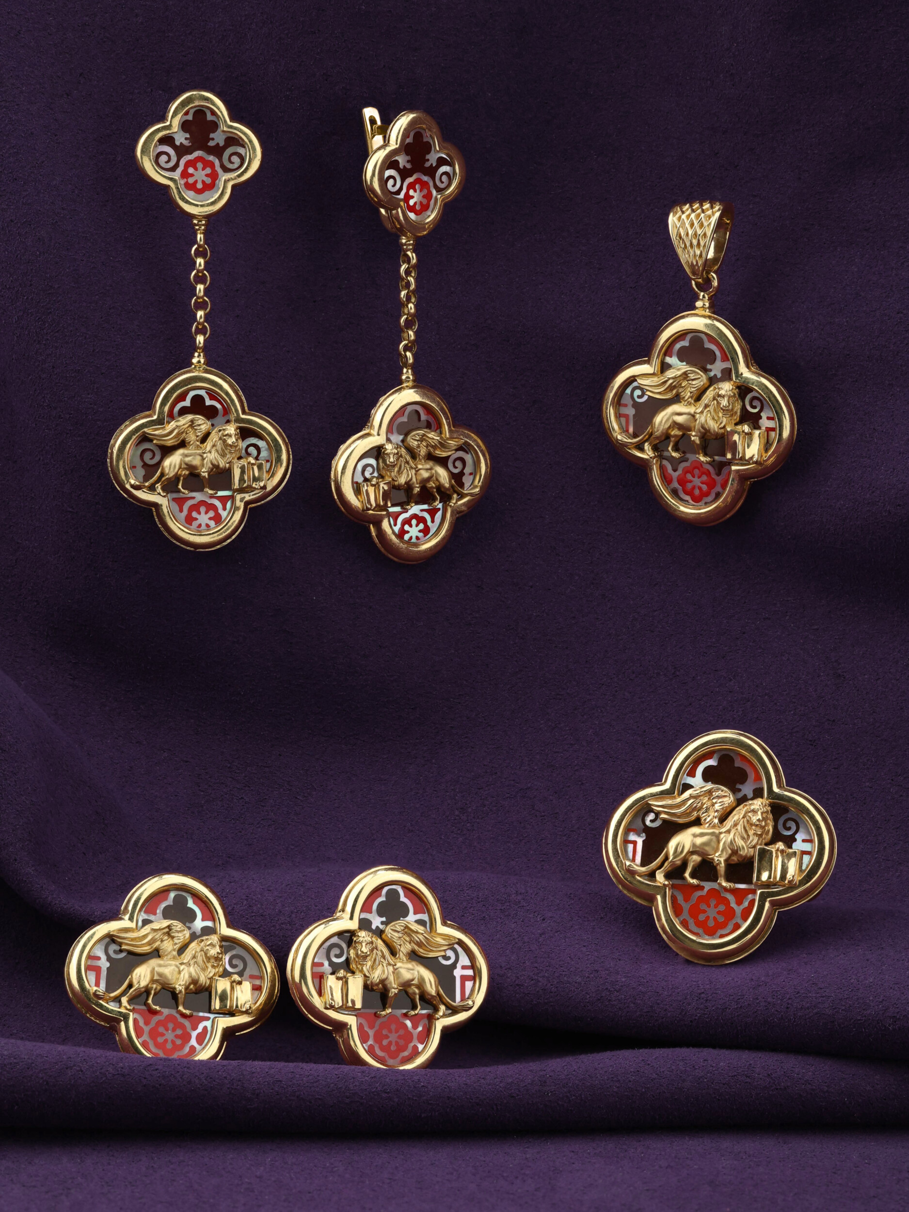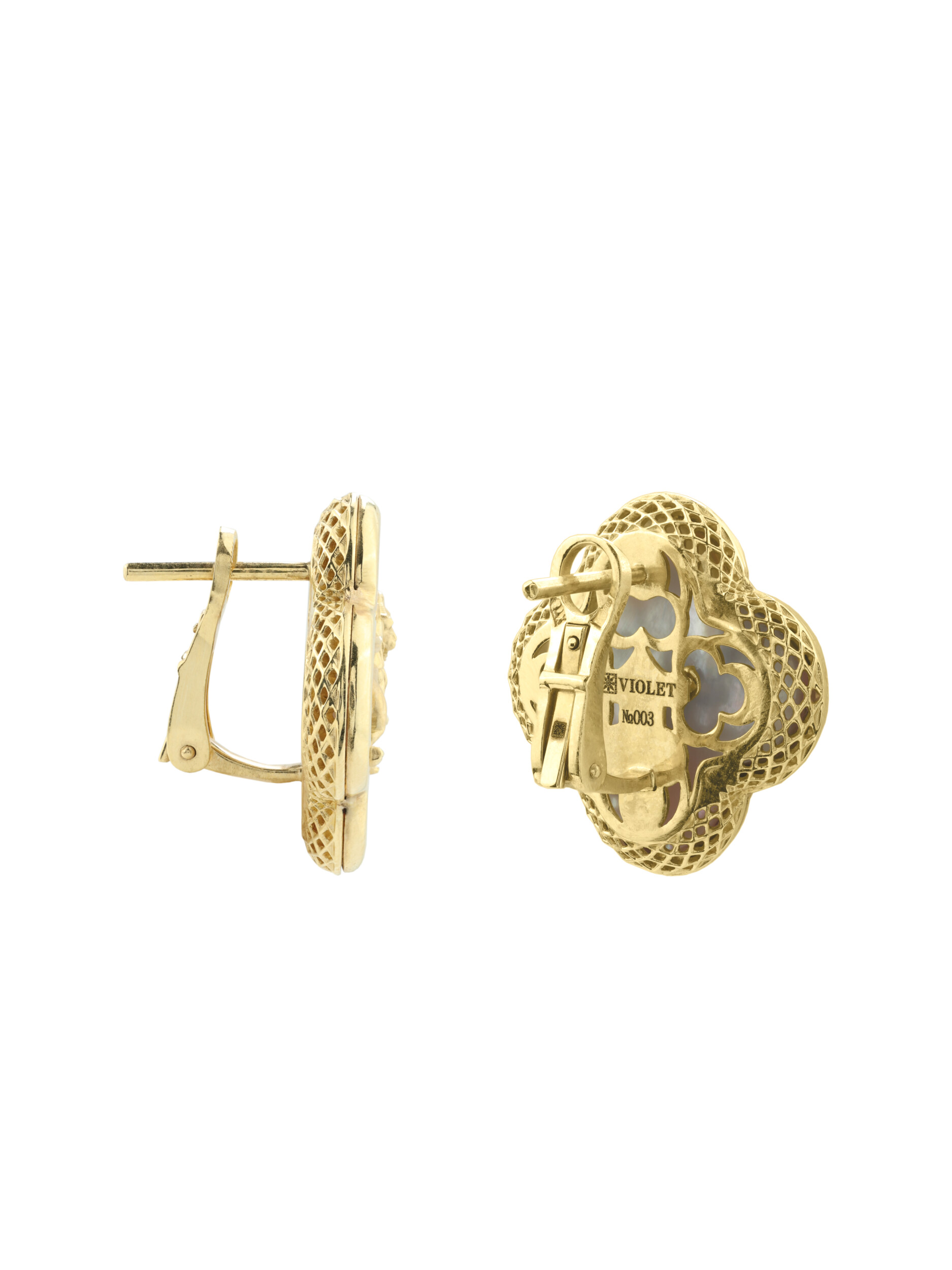Серьги из лимонного золота 585 пробы c эмалью и перламутром