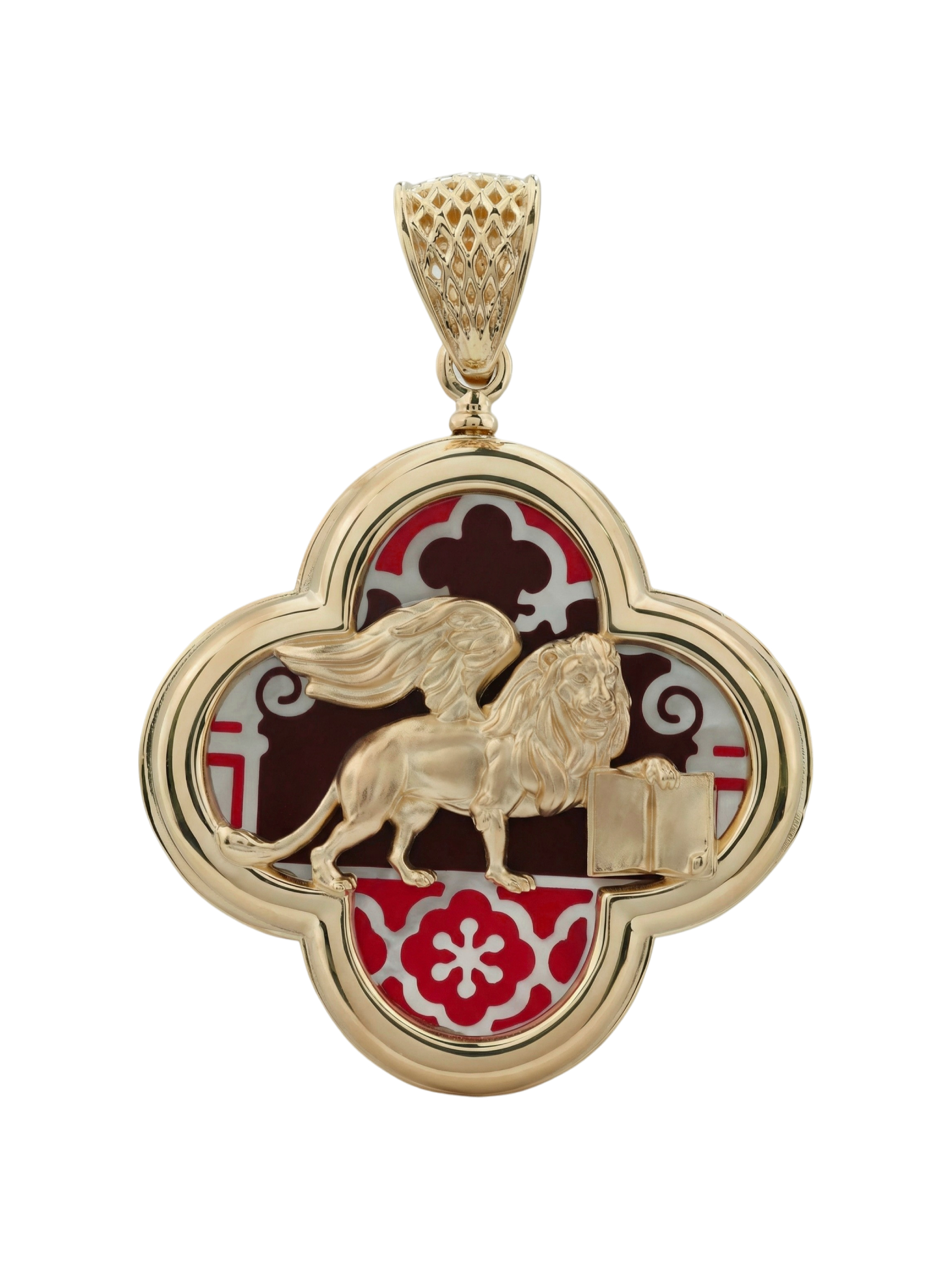Изысканная подвеска из красного золота 585 пробы станет центральным акцентом вашего образа, подчеркивая статус и безупречный вкус. Ювелирное изделие из коллекции De luxe Premium — Венецианский лев выполнено в уникальном дизайне: ключевым элементом композиции является величественный лев, выполненный из золота. Этот символ власти и мудрости гармонично обрамлен контрастной отделкой, где сочетаются ювелирная эмаль и благородный перламутр. Разноцветный декор эмали добавляет украшению глубину и выразительность, создавая неповторимый визуальный эффект.