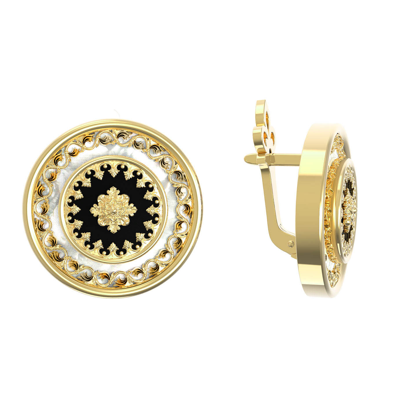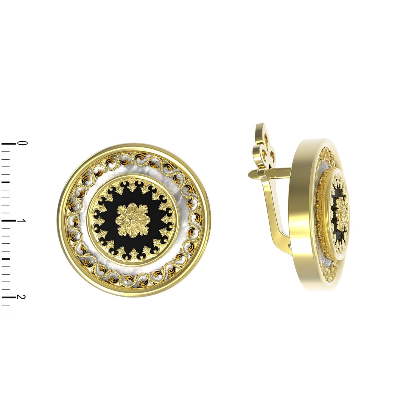 Серьги из лимонного золота 585 пробы c ониксом и перламутром