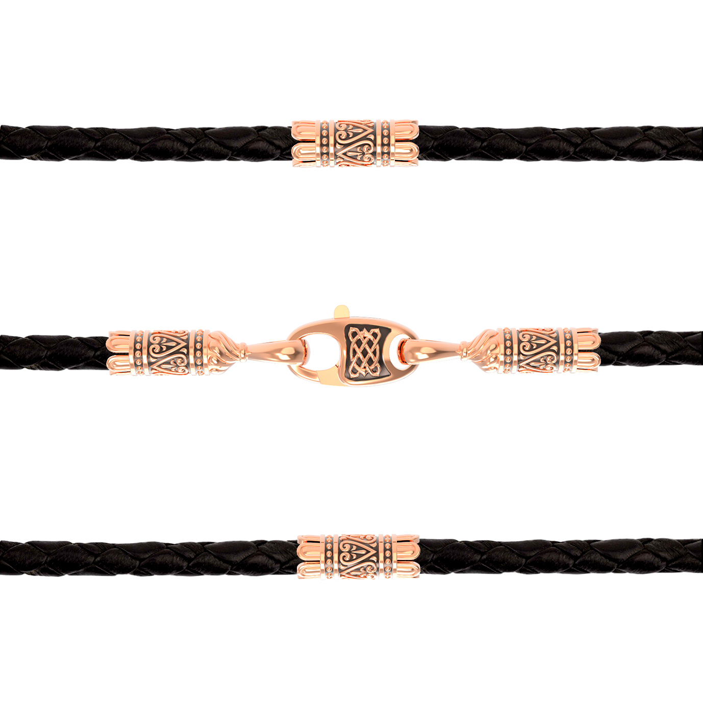 Цепь-шнурок кожа из красного золота 585 пробы c кожаным шнурком