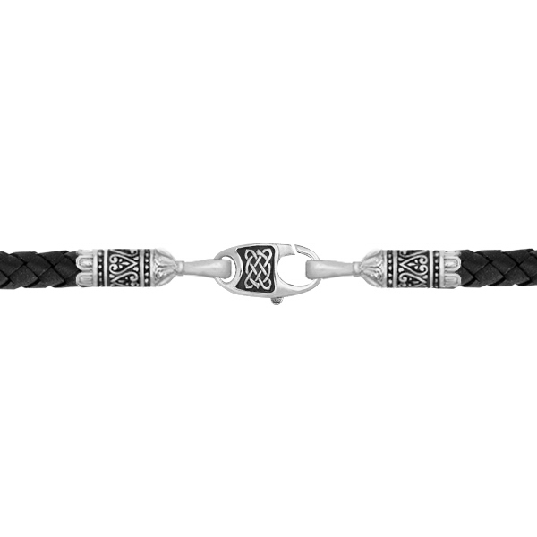 Цепь-шнурок кожа из белого золота 585 пробы c кожаным шнурком