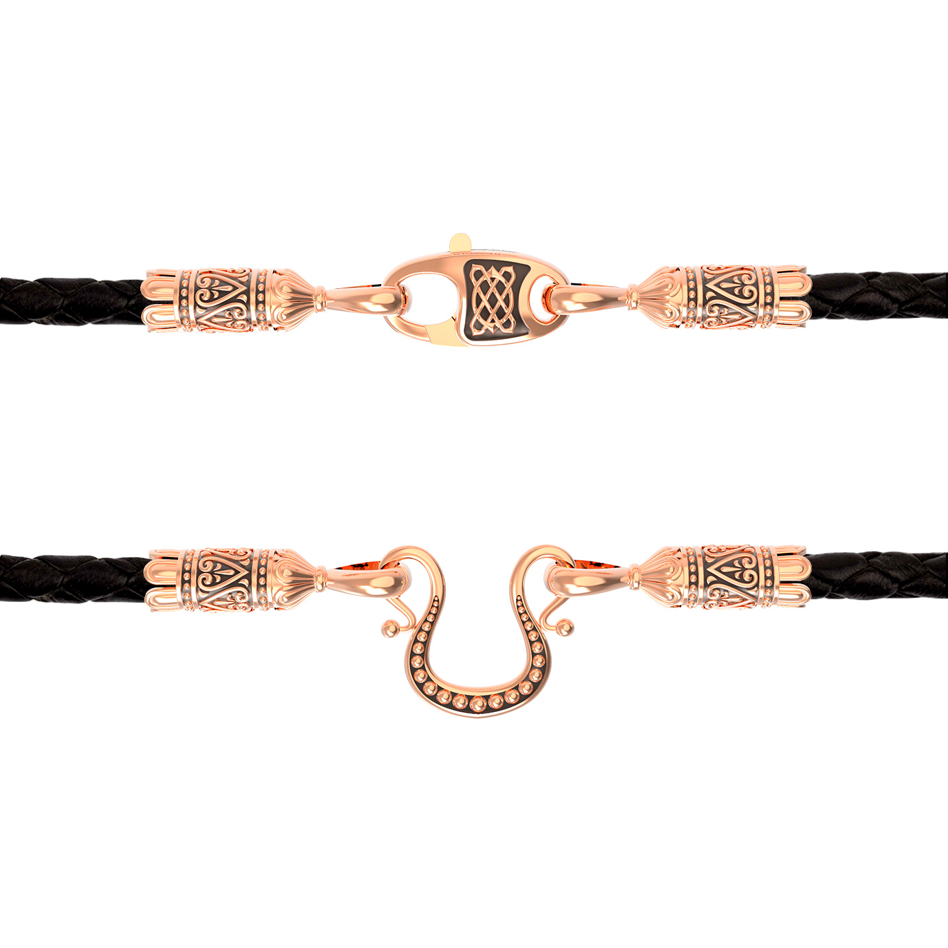 Цепь-шнурок кожа из красного золота 585 пробы c кожаным шнурком