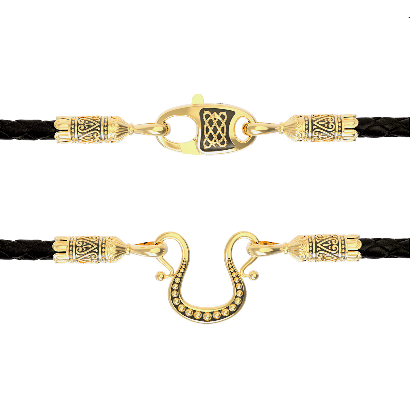 Цепь-шнурок кожа из лимонного золота 585 пробы c кожаным шнурком