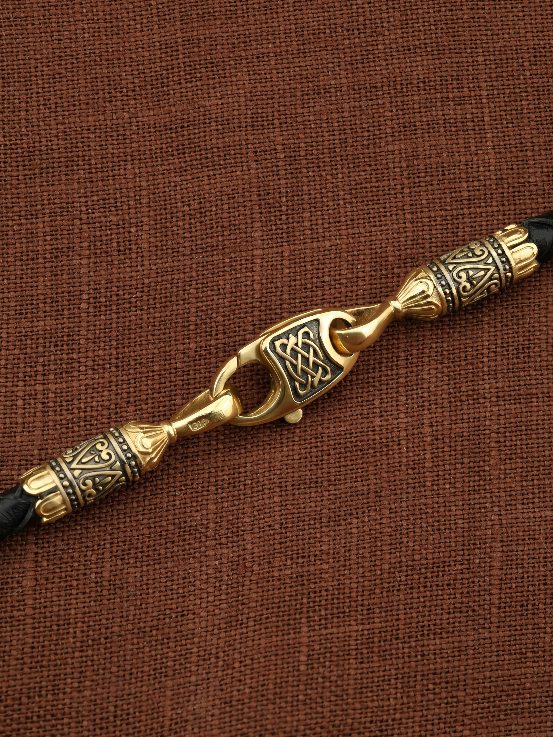 Гайтан из лимонного золота c кожаным шнурком