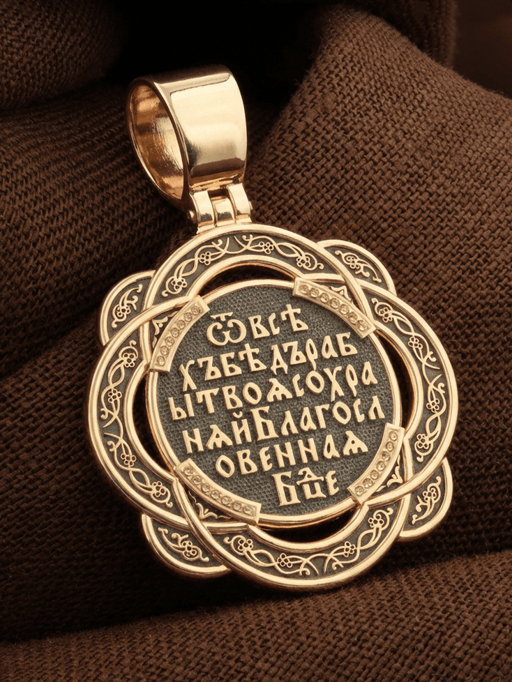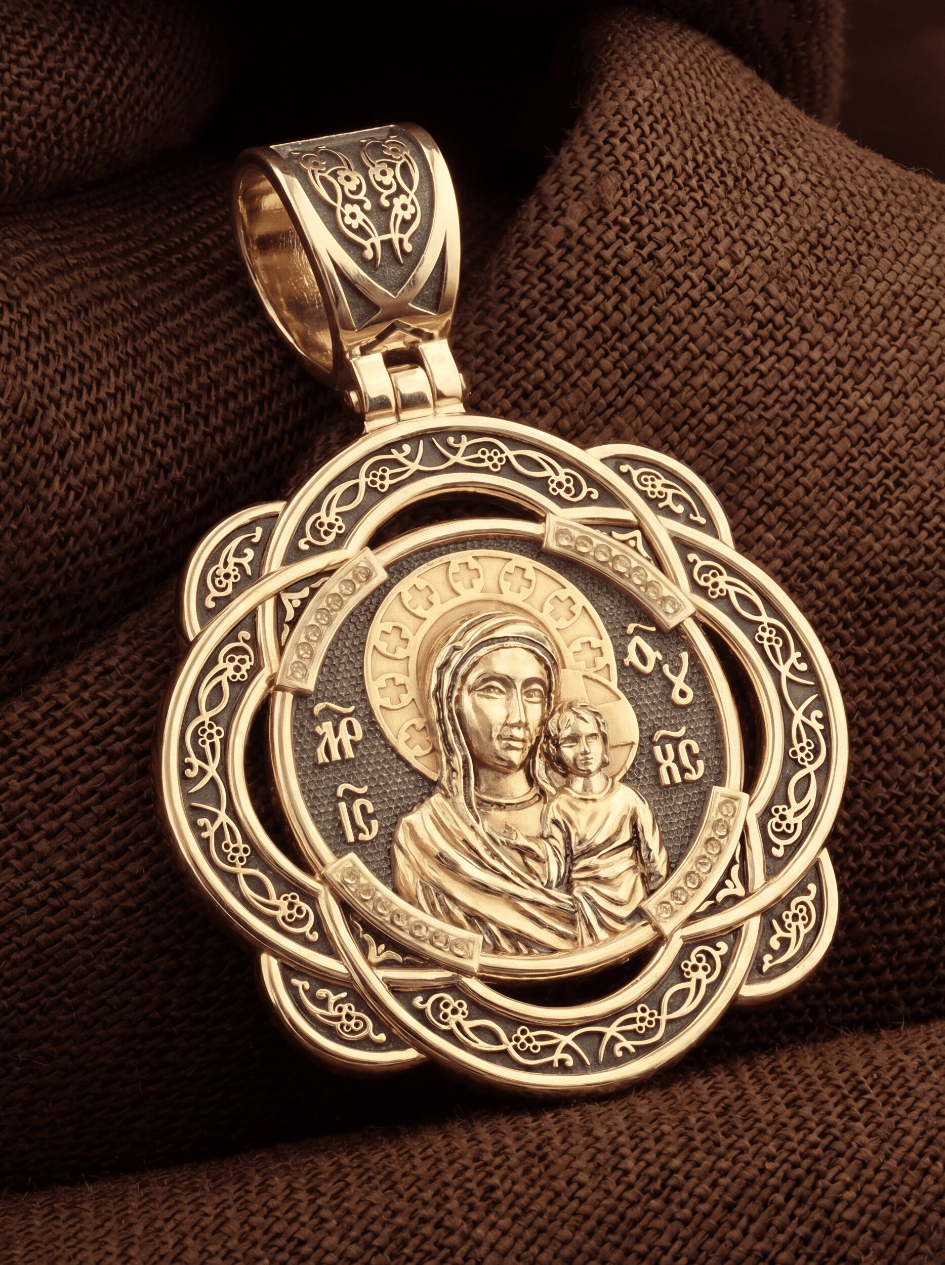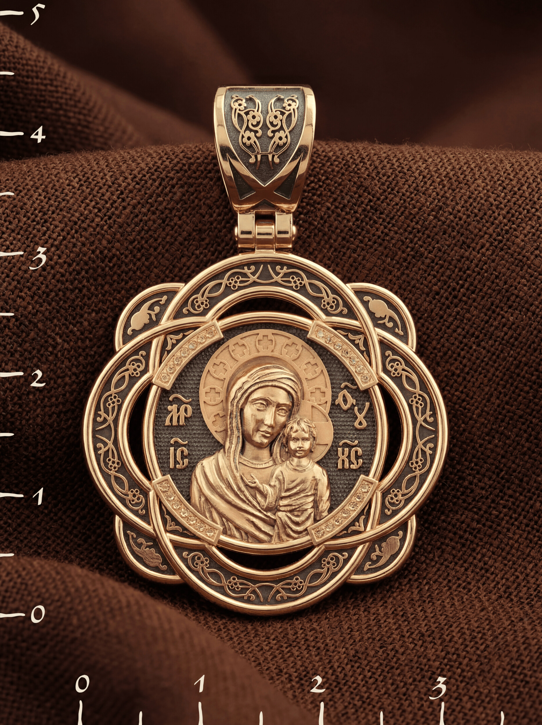 На лицевой части образка изображена Казанская икона Пресвятой Богородицы — одна из самых почитаемых в России. Икона была явлена на пожарище в Казани в 1579 году. В 1904 году святыня была похищена и уничтожена, но чудотворную силу иконы Богородица явила во многих ее списках. Молитва перед Казанской иконой Божьей Матери помогает во всех сложных случаях жизни, во всех печалях, невзгодах, скорбях.