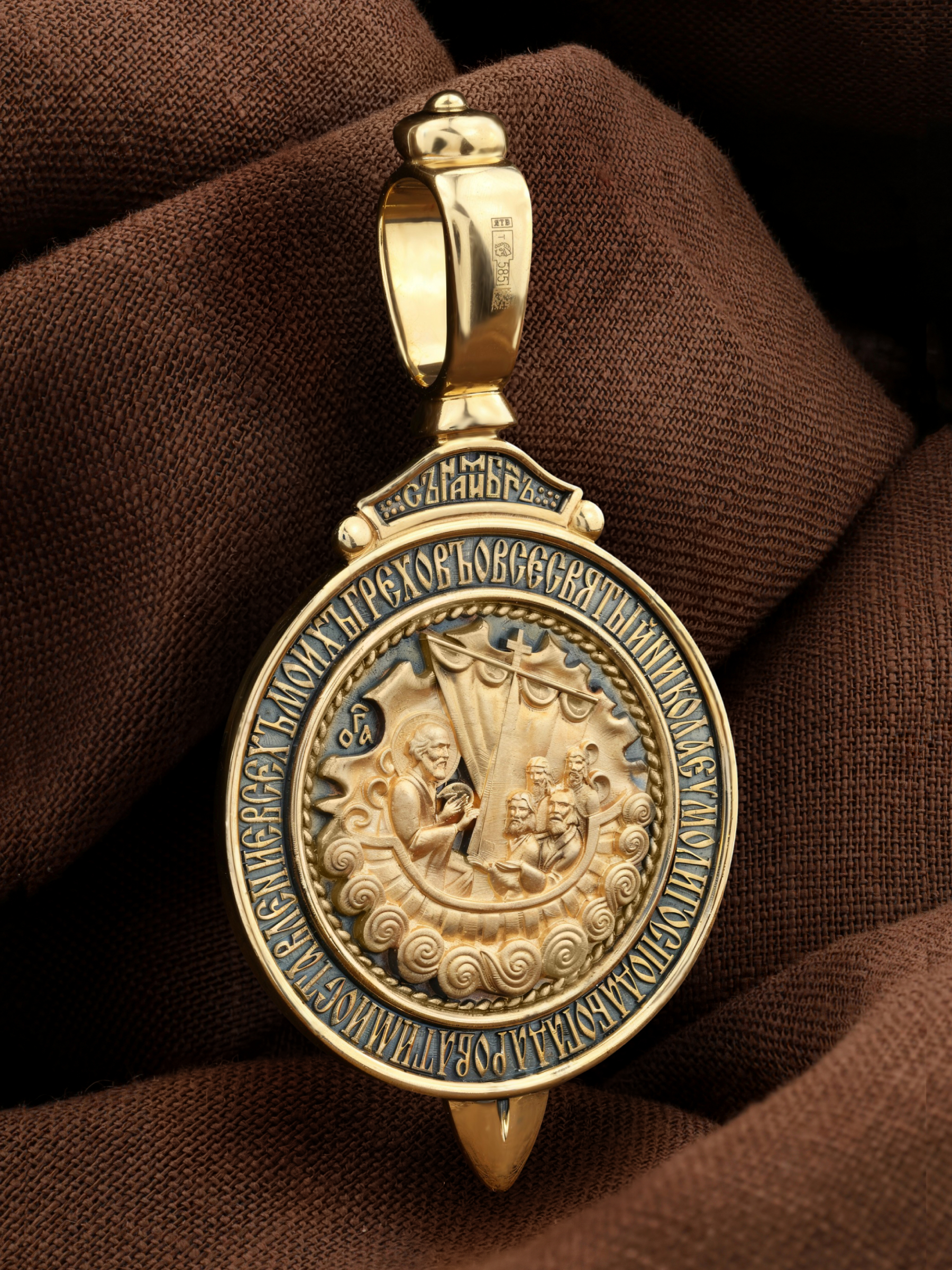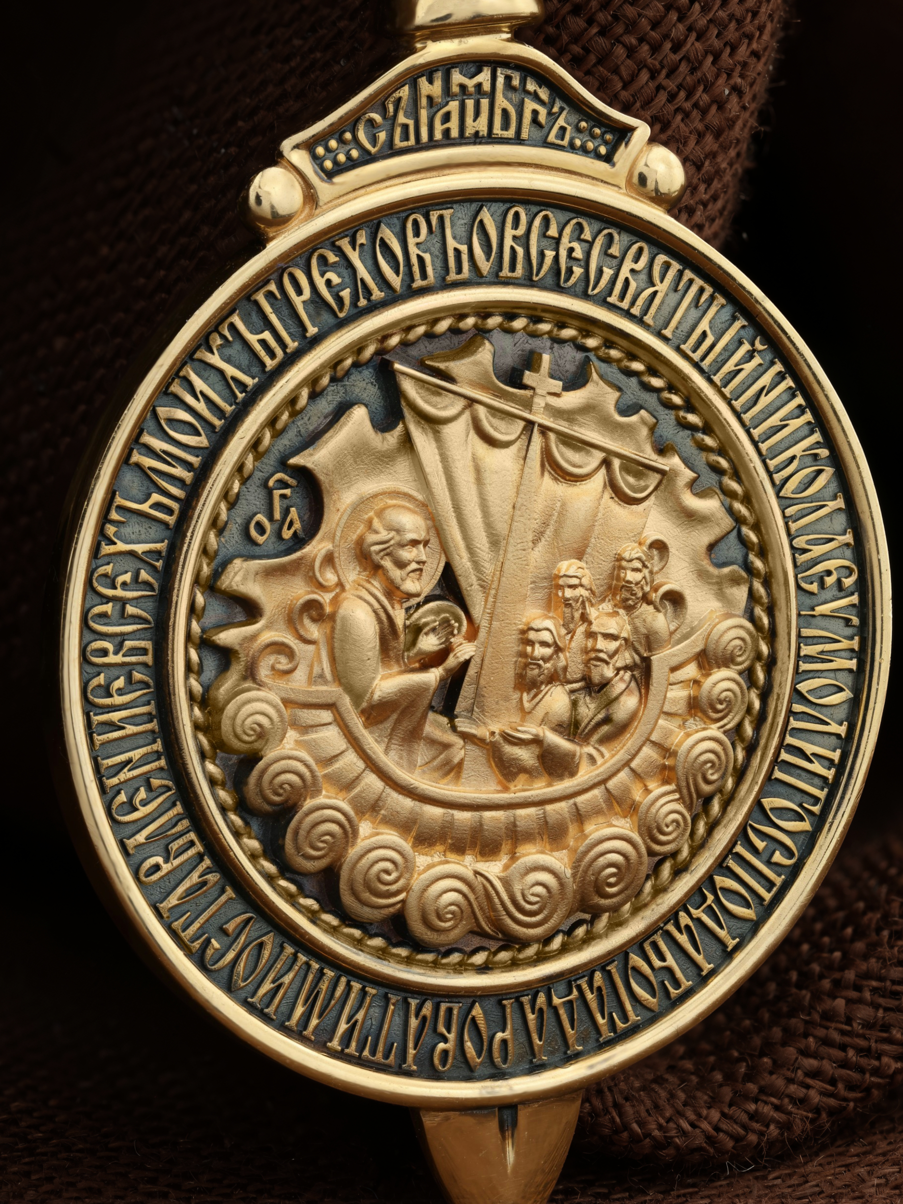 На оборотной стороне образка изображен Святитель Николай Чудотворец, архиепископ Мир Ликийских. Он является одним из самых почитаемых святых в православном мире, издревле считающийся помощником и молитвенником за всех, притекающих к нему. Вся жизнь святого Николая — это служение Богу. Чудес его исчислить невозможно. Одним из чудес было спасение Святым Угодником Николаем погибающих во время шторма моряков. Они никогда не видели епископа города Миры, но слышали о его чудесной помощи. В отчаянии они молитвенно воззвали к нему, и тот неожиданно появился на корме у руля и благополучно привел корабль в гавань. Этот сюжет изображен на образке и обрамлен словами молитвы: « О всесвятый Николае, умоли Господа Бога даровати ми оставление всех моих грехов».