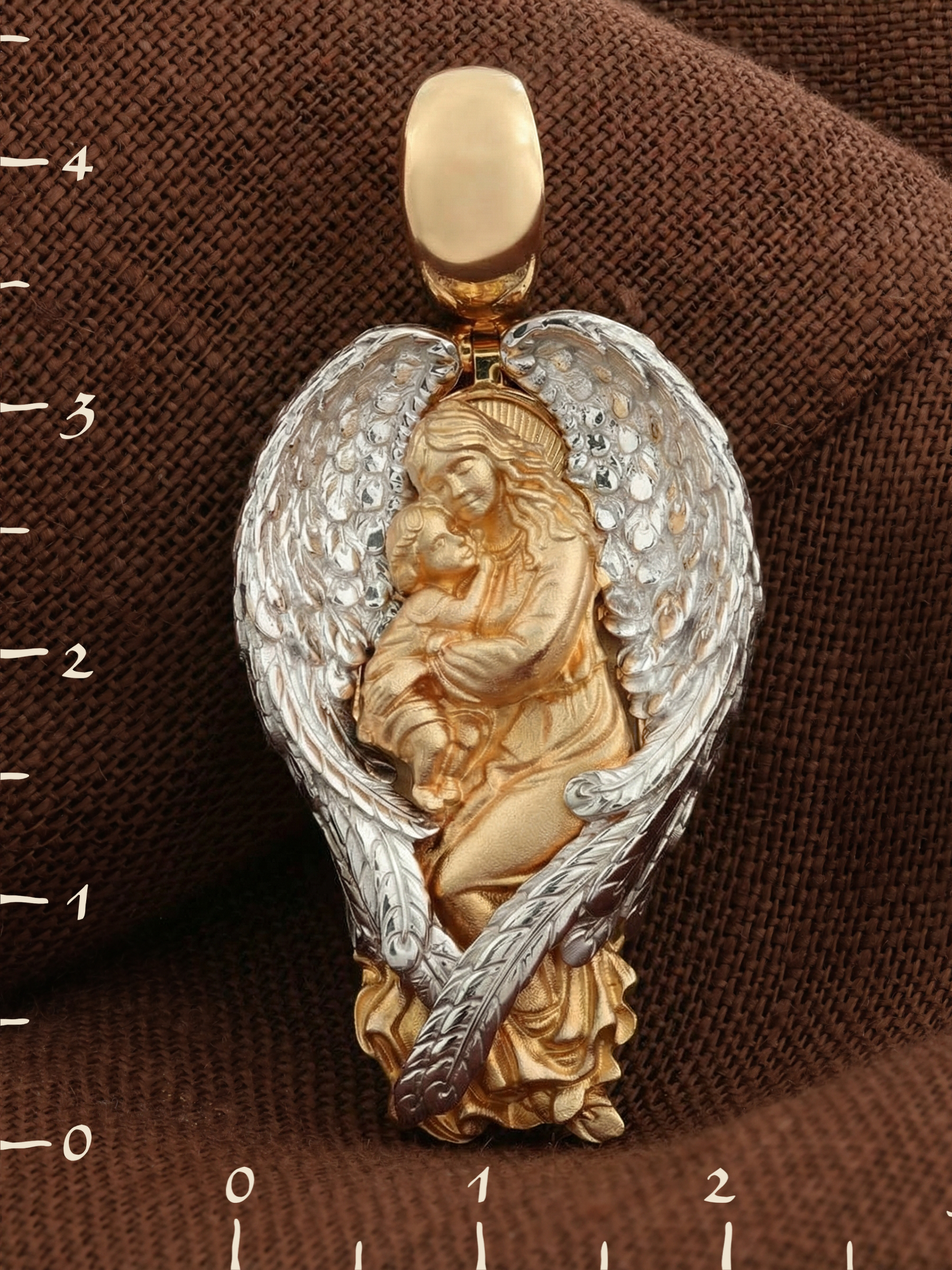 На оборотной стороне размещена молитва: «Ангеле Божий, хранителю мой святый, живот мой соблюди во страсе Христа Бога, ум мой утверди во истиннем пути, и к любви горней уязви душу мою, да тобою направляем, получу от Христа Бога велию милость».