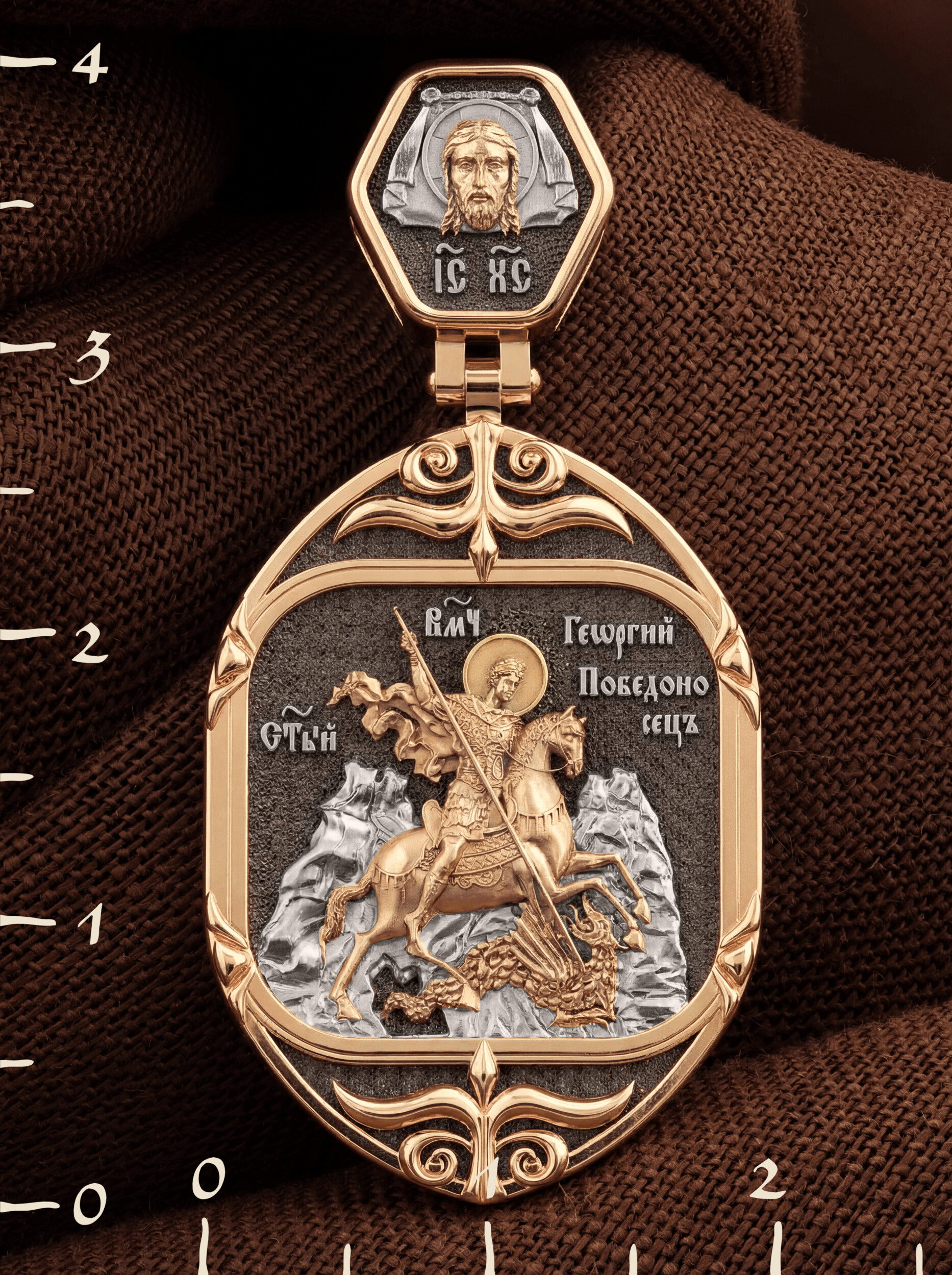 Основой композиции лицевой стороны является изображение Святого Георгия Победоносца.