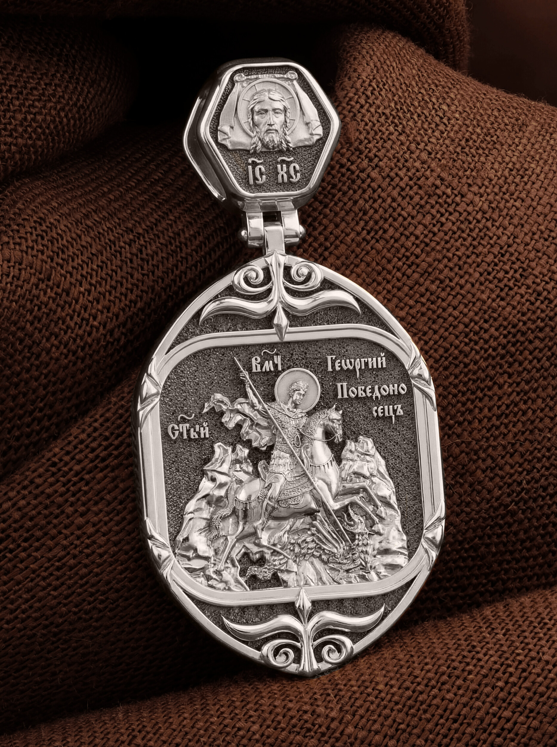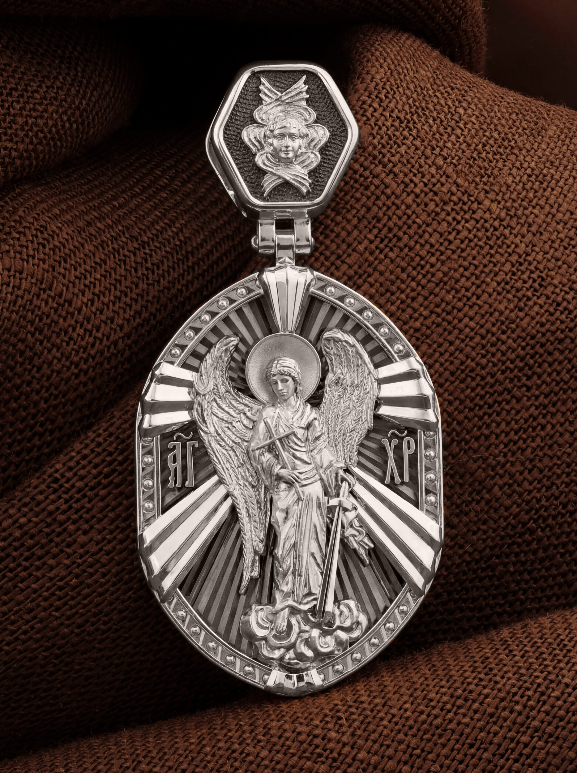 На кулонном кольце изображен Спас Нерукотворный — Символ вочеловечившегося Божества.