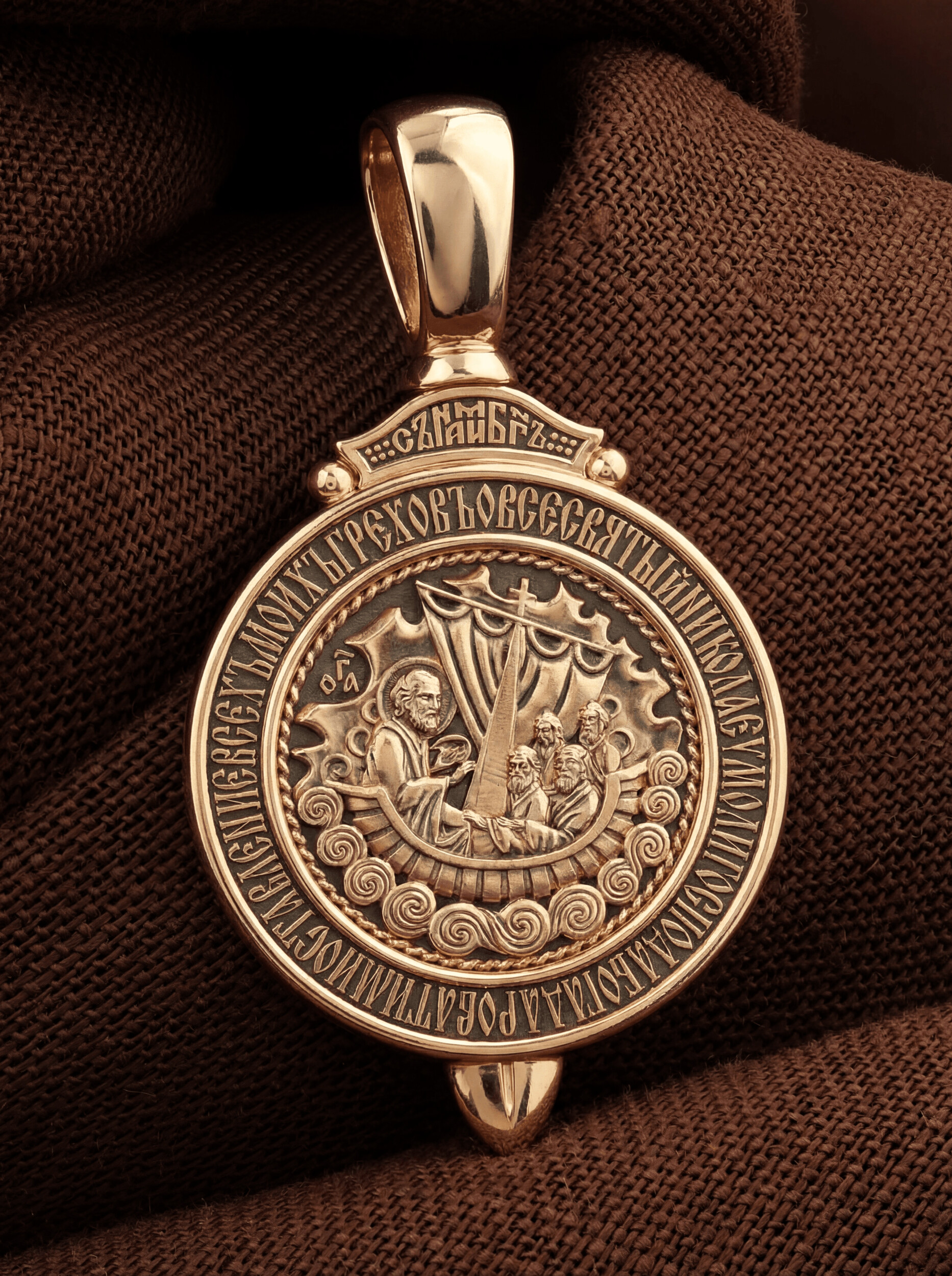 На оборотной стороне образка изображен Святитель Николай Чудотворец, архиепископ Мир Ликийских. Он является одним из самых почитаемых святых в православном мире, издревле считающийся помощником и молитвенником за всех, притекающих к нему. Вся жизнь святого Николая — это служение Богу. Чудес его исчислить невозможно. Одним из чудес было спасение Святым Угодником Николаем погибающих во время шторма моряков. Они никогда не видели епископа города Миры, но слышали о его чудесной помощи. В отчаянии они молитвенно воззвали к нему, и тот неожиданно появился на корме у руля и благополучно привел корабль в гавань. Этот сюжет изображен на образке и обрамлен словами молитвы: « О всесвятый Николае, умоли Господа Бога даровати ми оставление всех моих грехов».