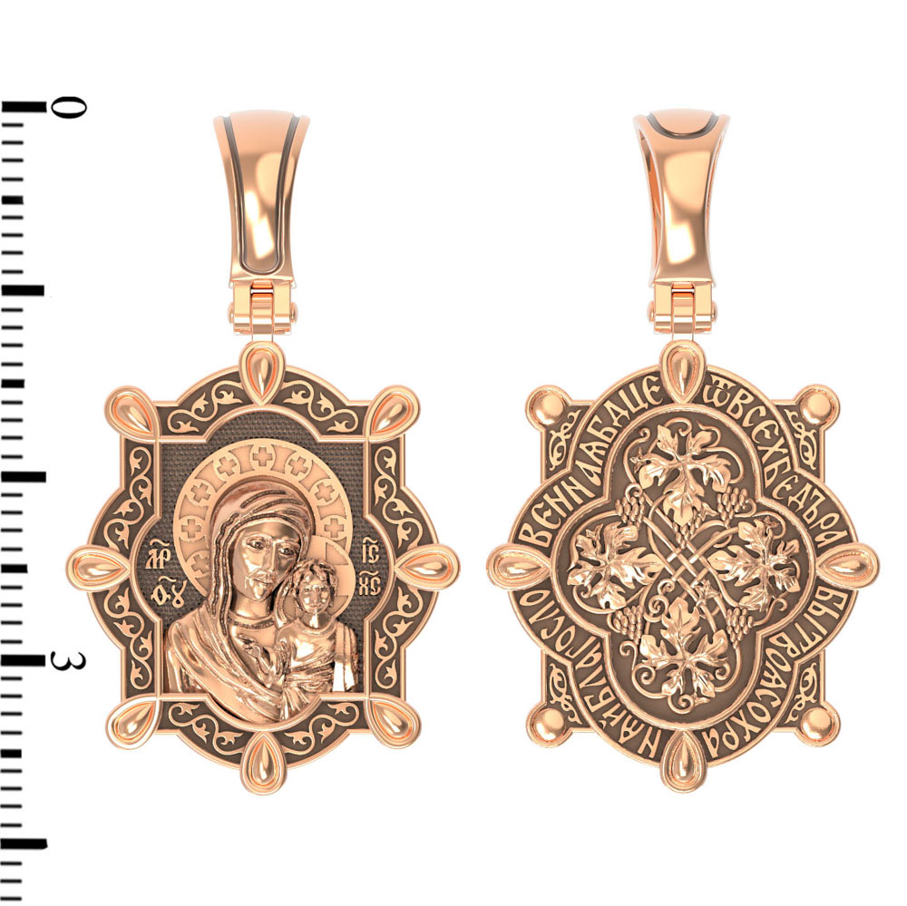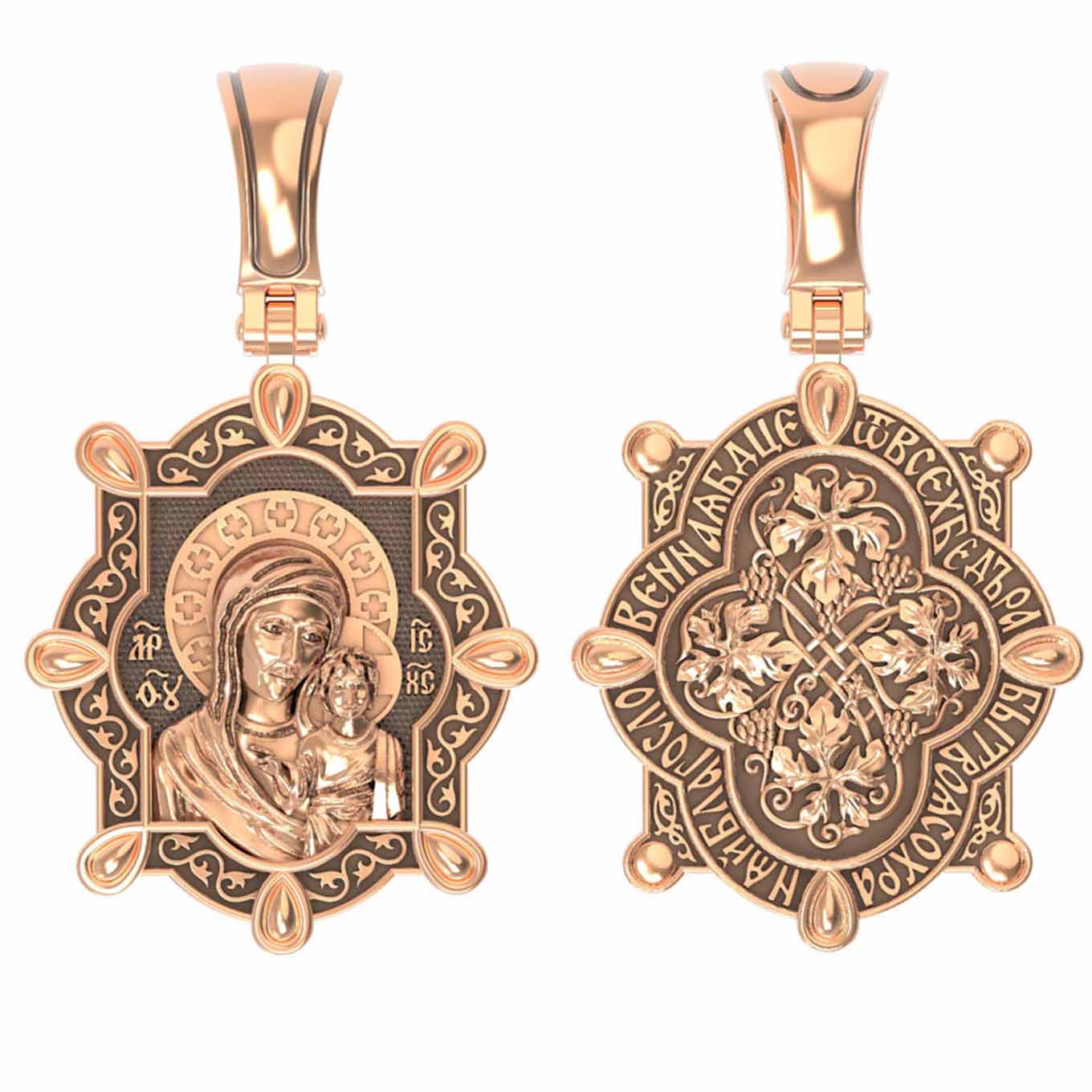 На лицевой части образка изображена Казанская икона Пресвятой Богородицы — одна из самых почитаемых в России чудотворных икон Богородицы. Богословское значение Казанской иконы — указать верующим истинный Путь к спасению, который лежит через Христа. Только Божия Матерь имеет настолько сильное дерзновение к Спасителю, что может ходатайствовать перед Ним за всех верных. Именно этот образ дарится новой повенчанной паре, как хранитель очага и семейная реликвия. Молитва перед Казанской иконой Божьей Матери помогает во всех сложных случаях жизни, в болезнях, во всех печалях, невзгодах, скорбях. Уникальная история появления, чудеса, случившиеся по молитвам православных людей возле образа — все это делает Казанскую Богородицу особенной, среди тысяч других икон.