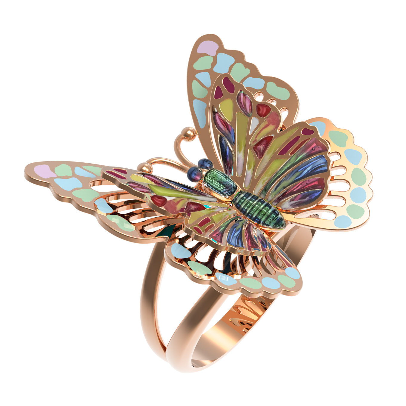 Кольцо из красного золота 585 пробы c эмалью