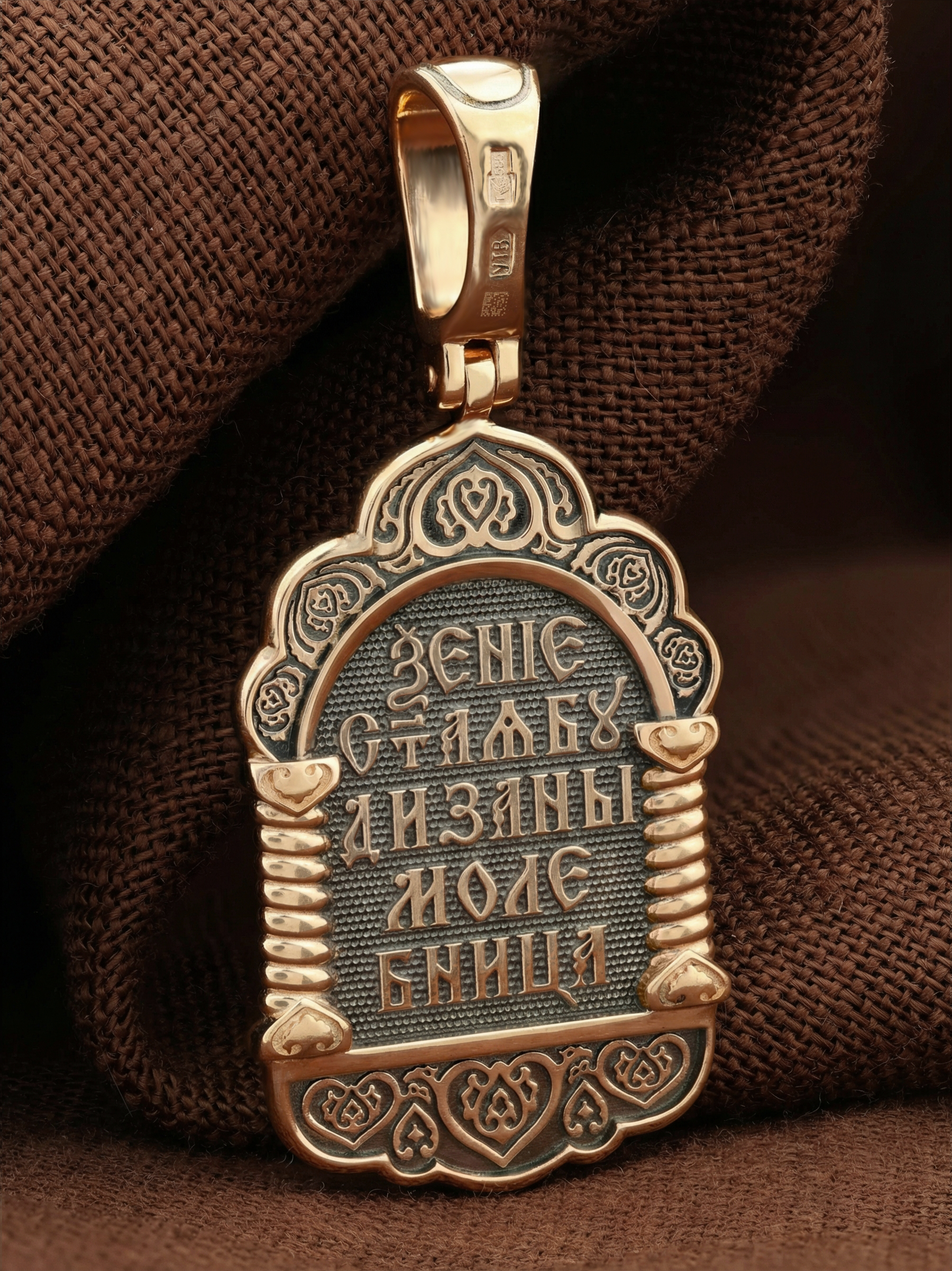 На оборотой стороне образка написана молитва: «Ксения святая, буди за нас молебница».