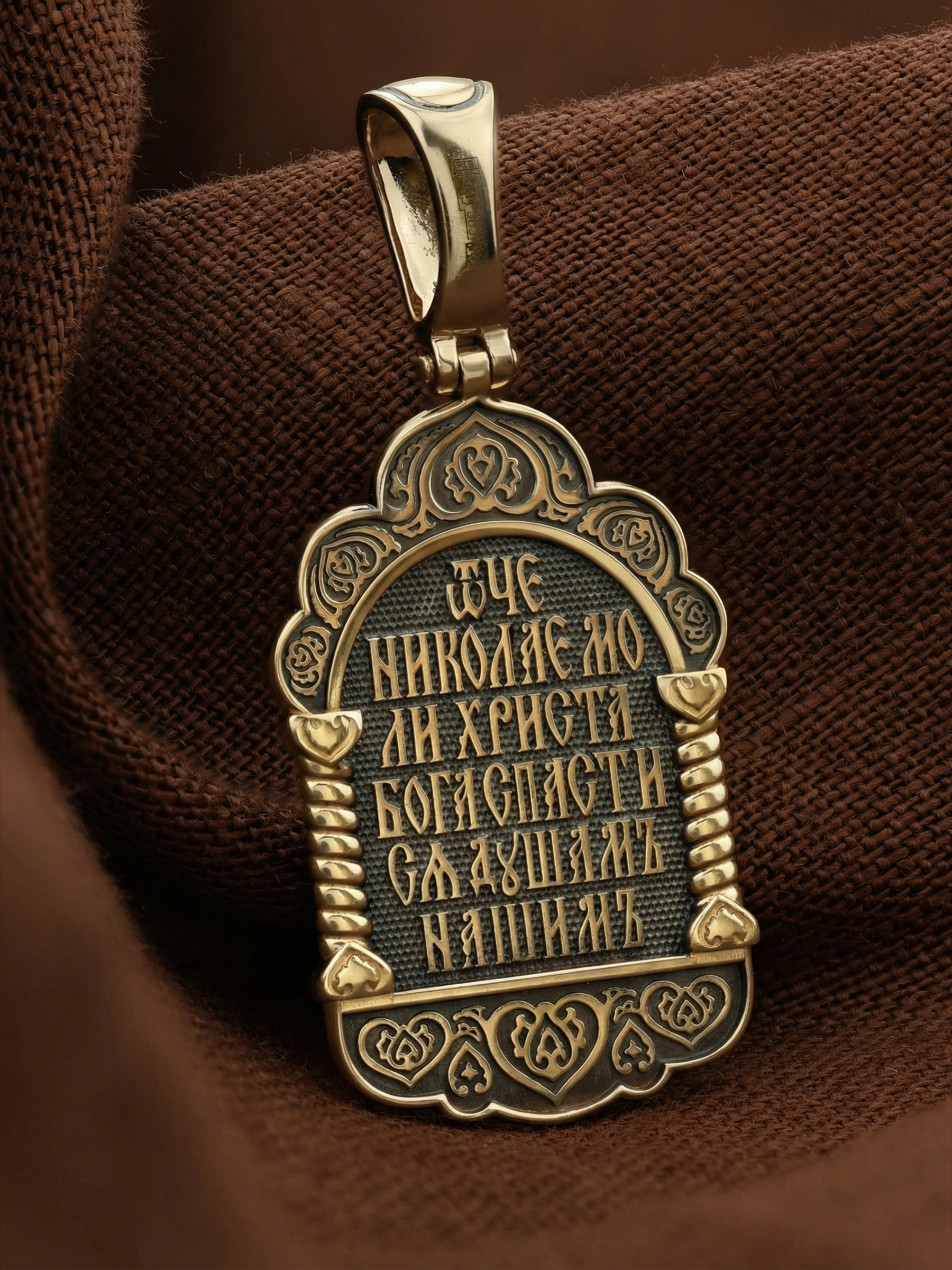 На оборотной стороне образка написаны слова молитвы: «Отче Николае, моли Христа Бога спастися душам нашим».
