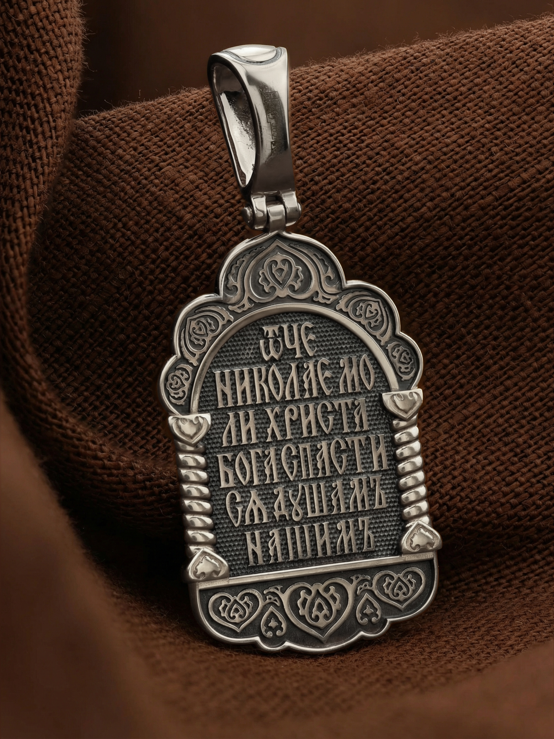На оборотной стороне образка написаны слова молитвы: «Отче Николае, моли Христа Бога спастися душам нашим».