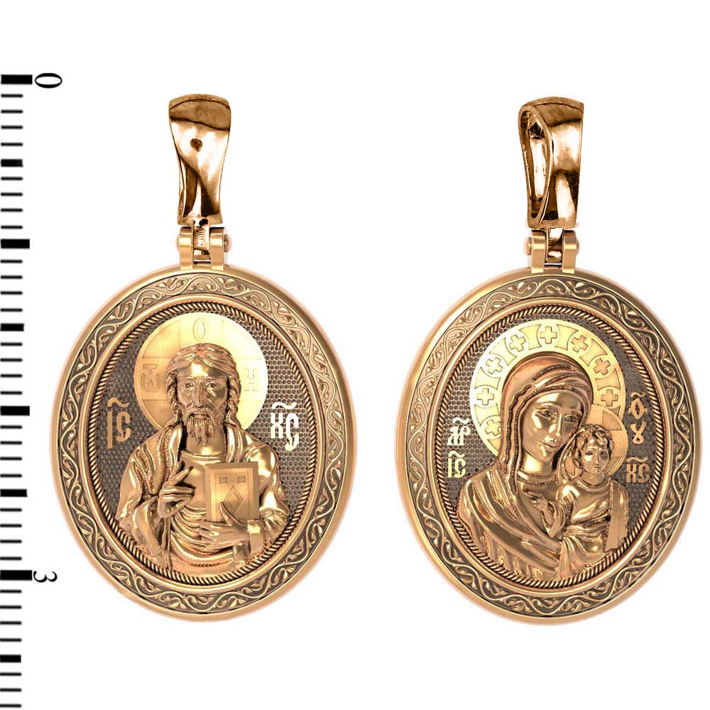 На обороте изображена Казанская икона Божией Матери — одна из самых почитаемых в России чудотворных икон Богородицы. Богословское значение Казанской иконы — указать верующим истинный Путь к спасению, который лежит через Христа. Только Божия Матерь имеет настолько сильное дерзновение к Спасителю, что может ходатайствовать перед Ним за всех верных. Именно этот образ дарится новой повенчанной паре, как хранитель очага и семейная реликвия. Молитва перед Казанской иконой Божьей Матери помогает во всех сложных случаях жизни, в болезнях, во всех печалях, невзгодах, скорбях. Уникальная история появления, чудеса, случившиеся по молитвам православных людей возле образа — все это делает Казанскую Богородицу особенной, среди тысяч других икон.