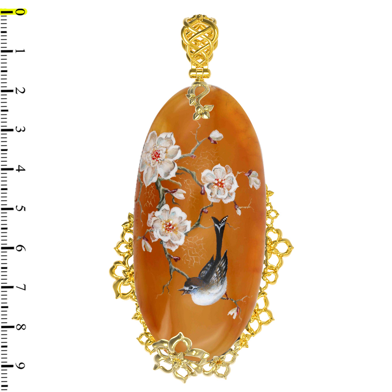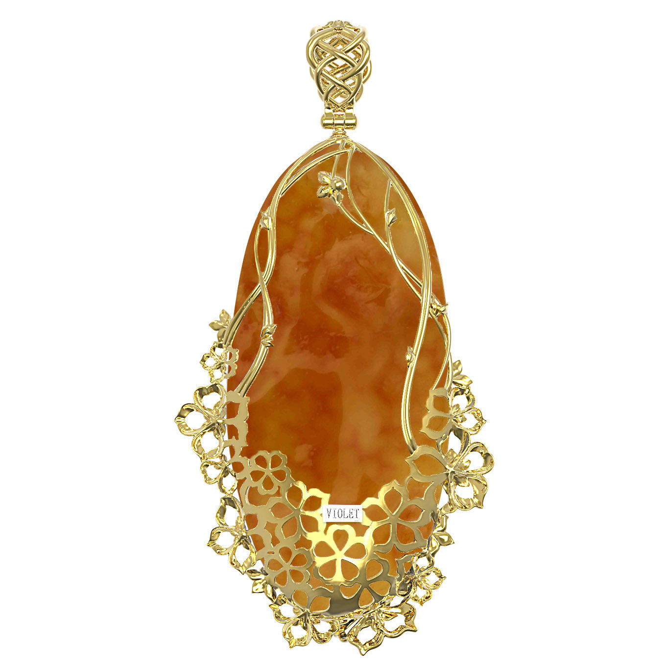 Подвеска из лимонного золота 585 пробы c росписным янтарём