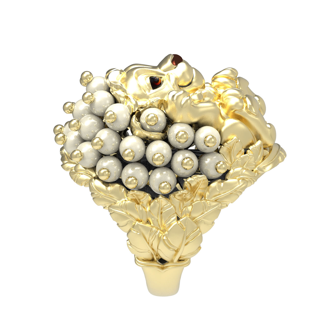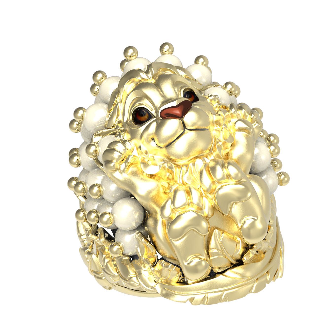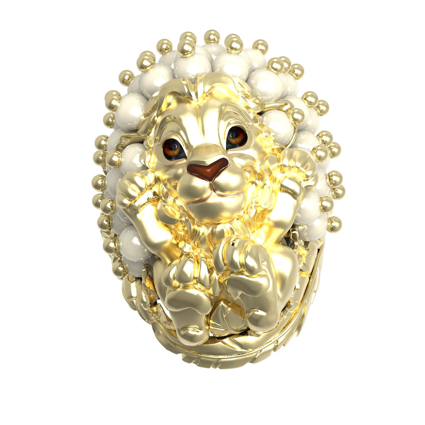 Кольцо из лимонного золота 585 пробы из коллекции De luxe Premium — Львята станет ярким акцентом в вашем образе, подчеркивая индивидуальность и статус. Дизайн украшения выполнен в виде изящной фигуры льва, символизирующего силу и благородство. Детально проработанный образ хищника дополнен художественной эмалью, придающей выразительность и глубину, а также вставками из жемчуга. Белый жемчуг гармонично контрастирует с теплым блеском лимонного золота, создавая эффектный и запоминающийся ювелирный ансамбль.