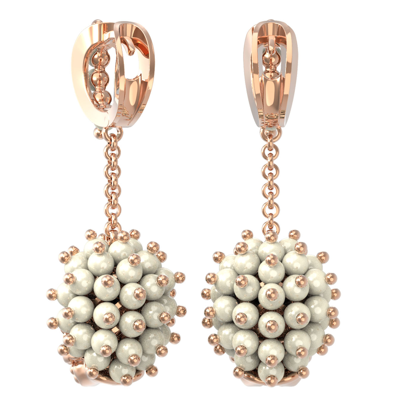 Серьги декорированы вставками из жемчуга и разноцветной эмали, которые создают неповторимое сочетание фактур. Круглая форма вставок гармонично дополняет композицию, а общее количество из 80 вставок придает украшению благородное сияние. Белый жемчуг привносит нотку классической элегантности, в то время как яркая эмаль добавляет современные акценты. Эти серьги из красного золота созданы как для женщин, так и для мужчин, предпочитающих смелые и выразительные аксессуары.