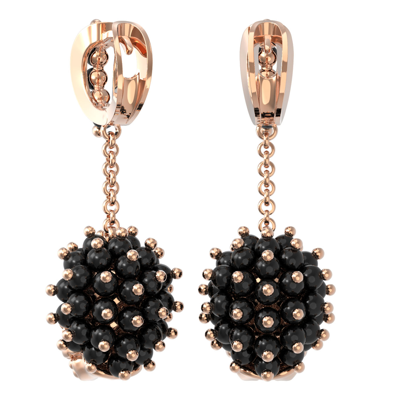 Особую выразительность композиции придает детально проработанный образ льва, декорированный цветной эмалью, которая оживляет черты и добавляет глубины ювелирному шедевру. В качестве вставок использованы 84 элемента в форме бусин из черного оникса, создающих эффектный контраст с теплым оттенком красного золота. Такое сочетание делает серьги по-настоящему заметным акцентом, привлекающим внимание к каждой детали. Изящная подвижная конструкция добавляет динамики при движении, подчеркивая премиальный характер украшения.
