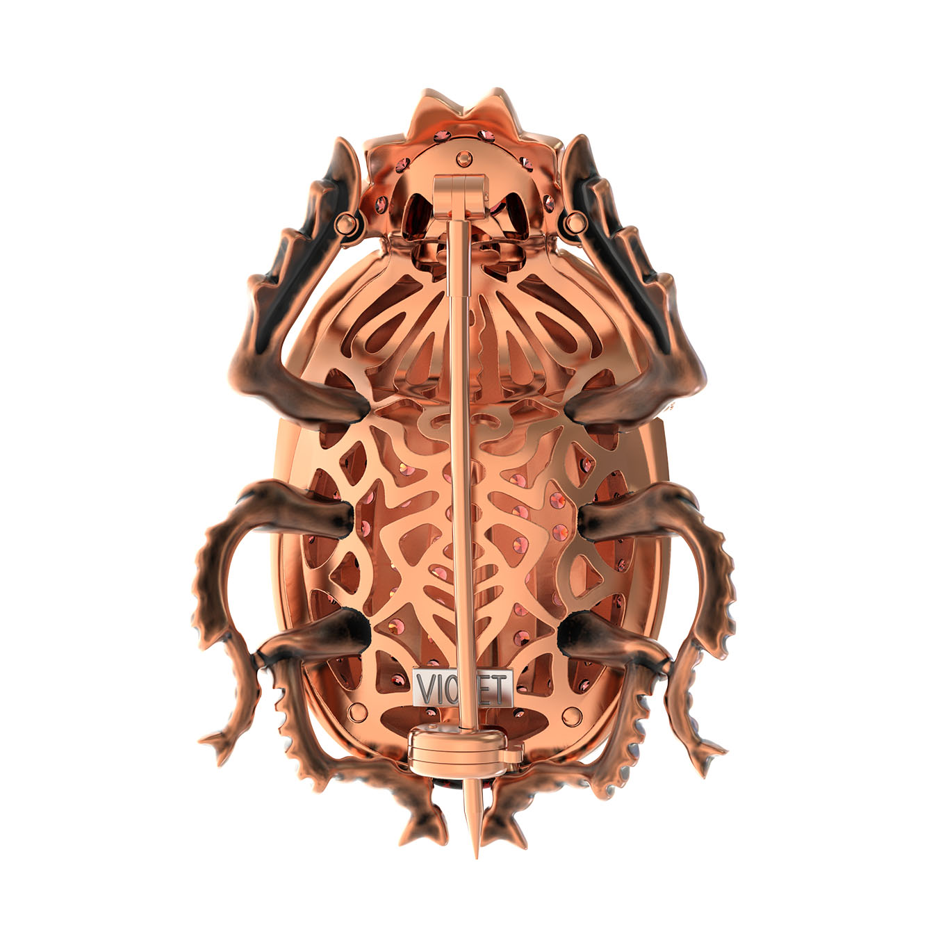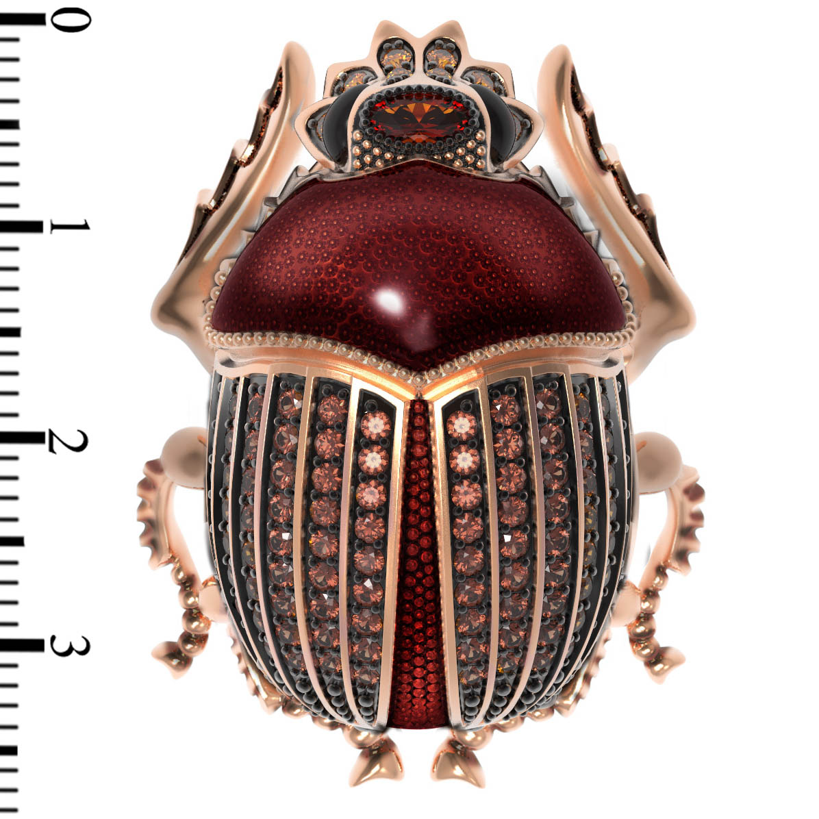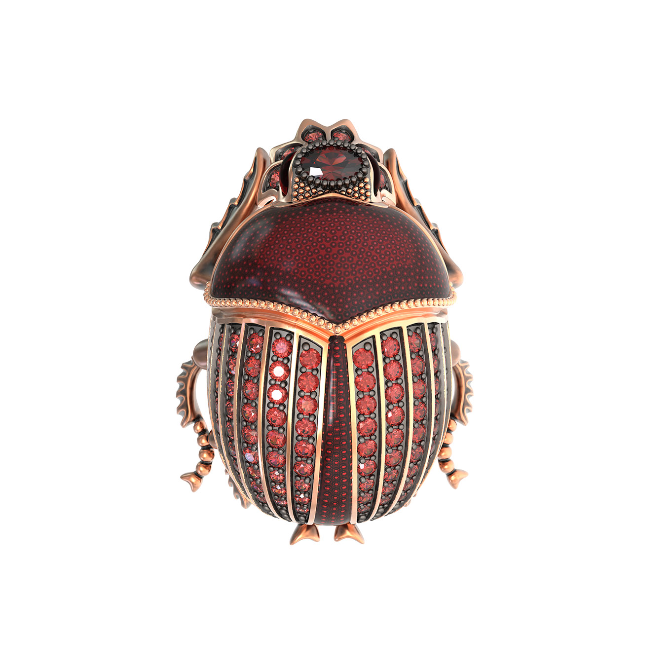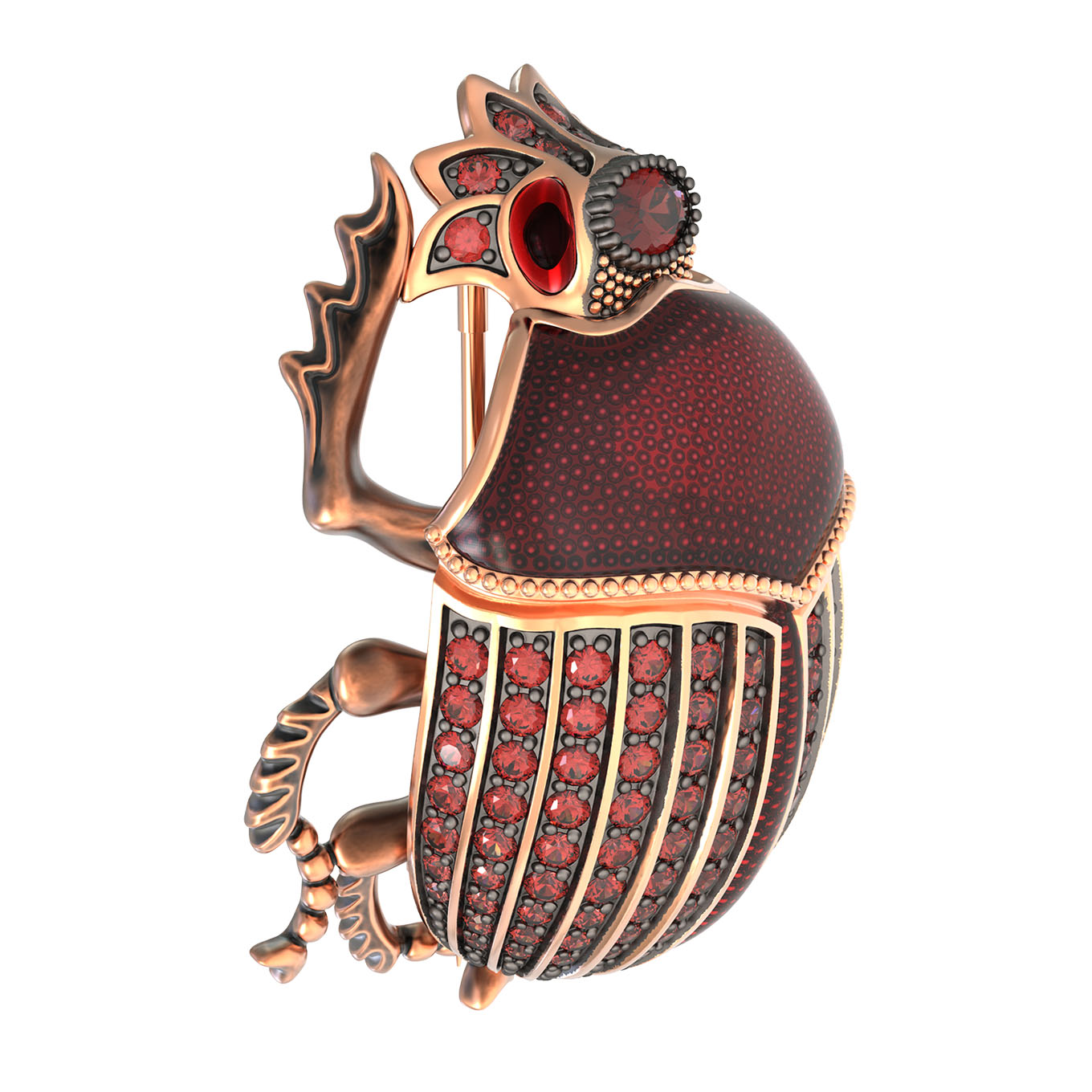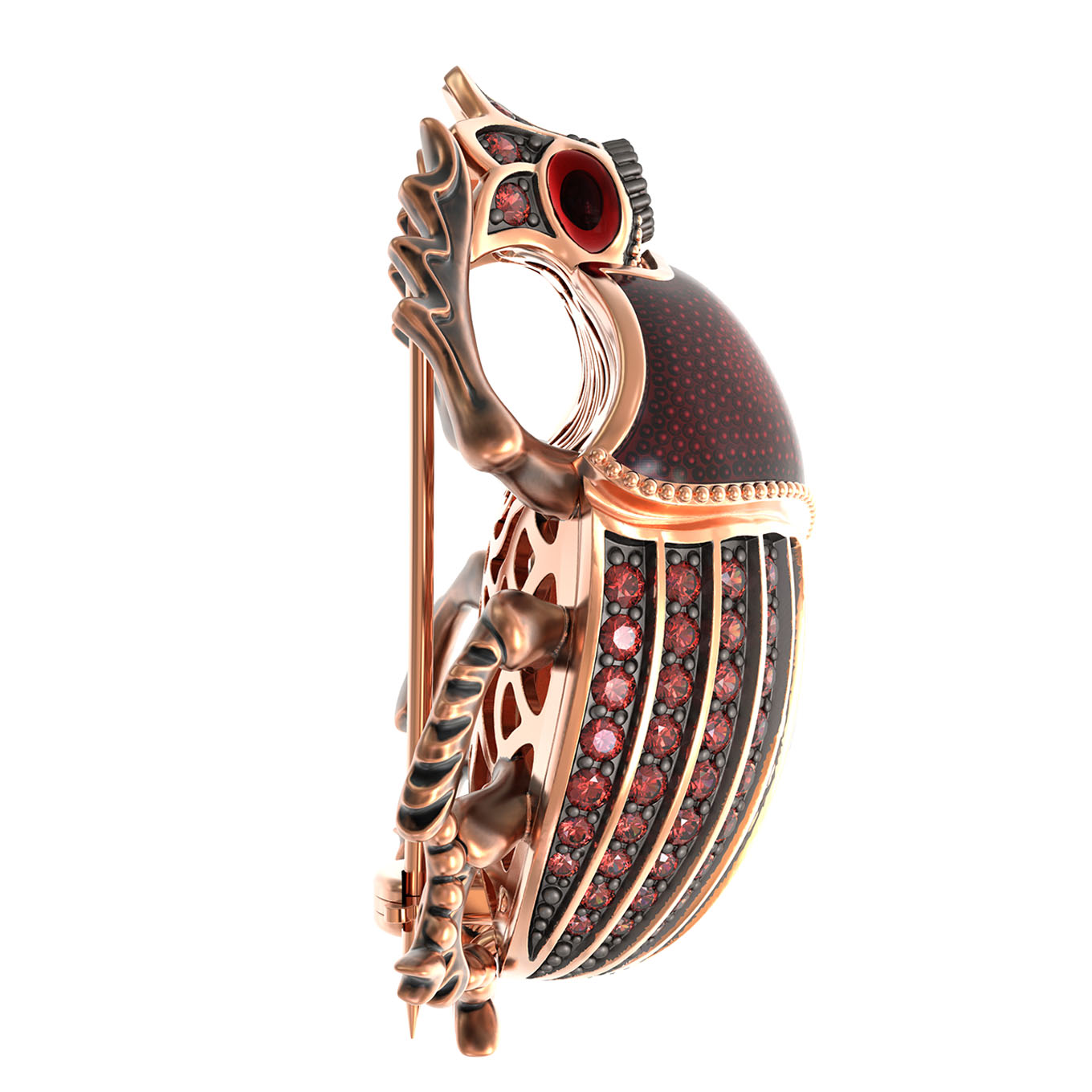 Брошь-подвеска из красного золота 585 пробы c эмалью, фианитом и гранатом