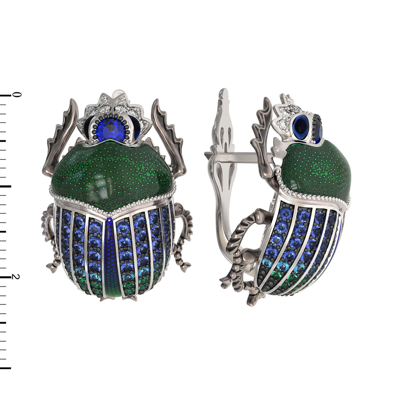 Серьги из белого золота c эмалью, фианитом и сапфиром