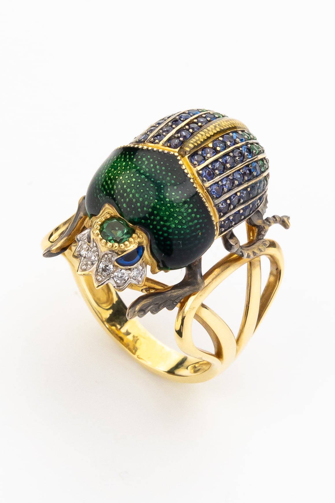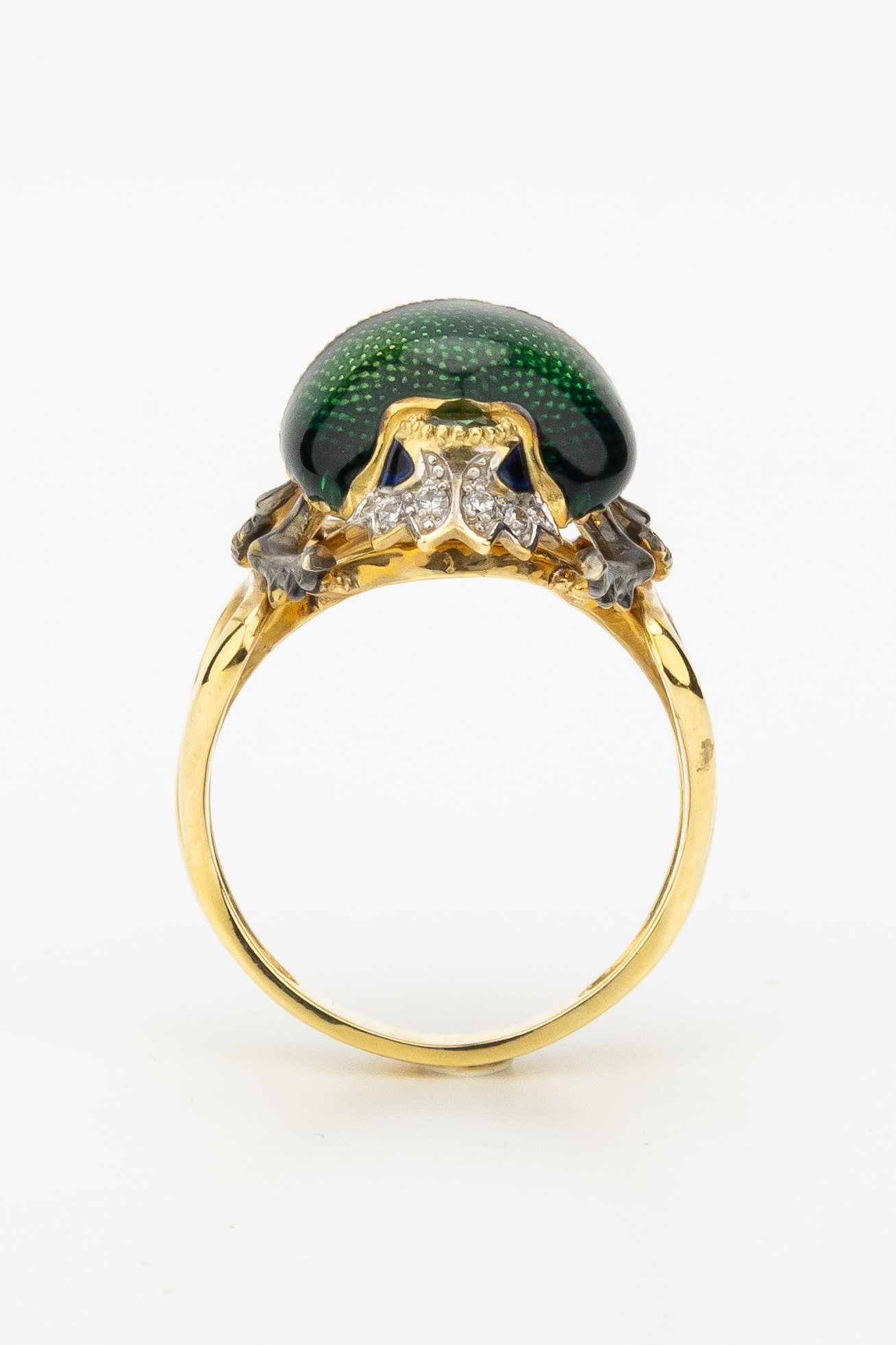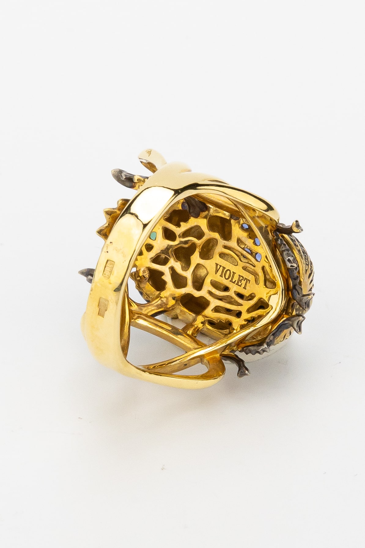 Кольцо из лимонного золота 585 пробы c эмалью, фианитом и турмалином