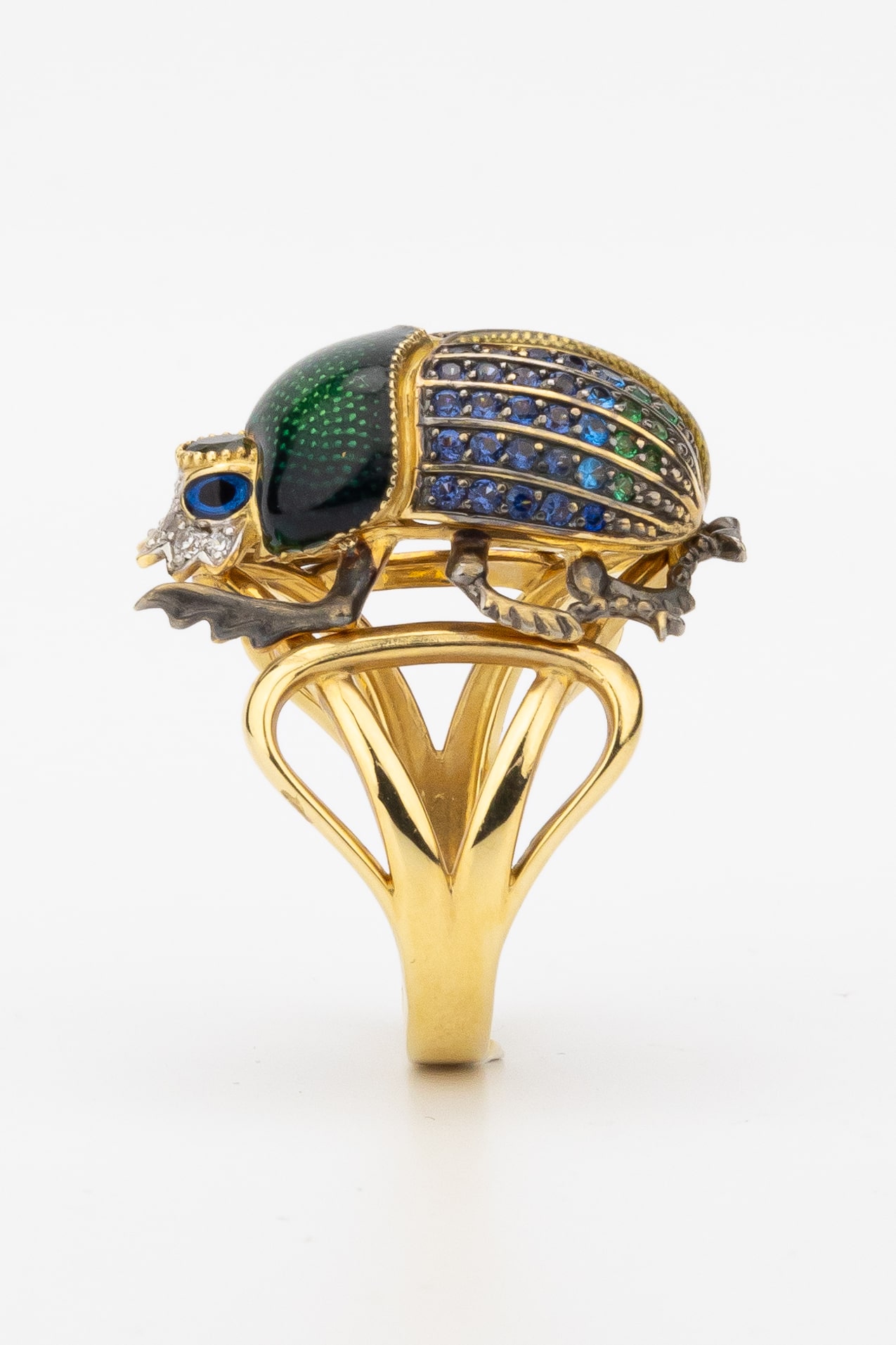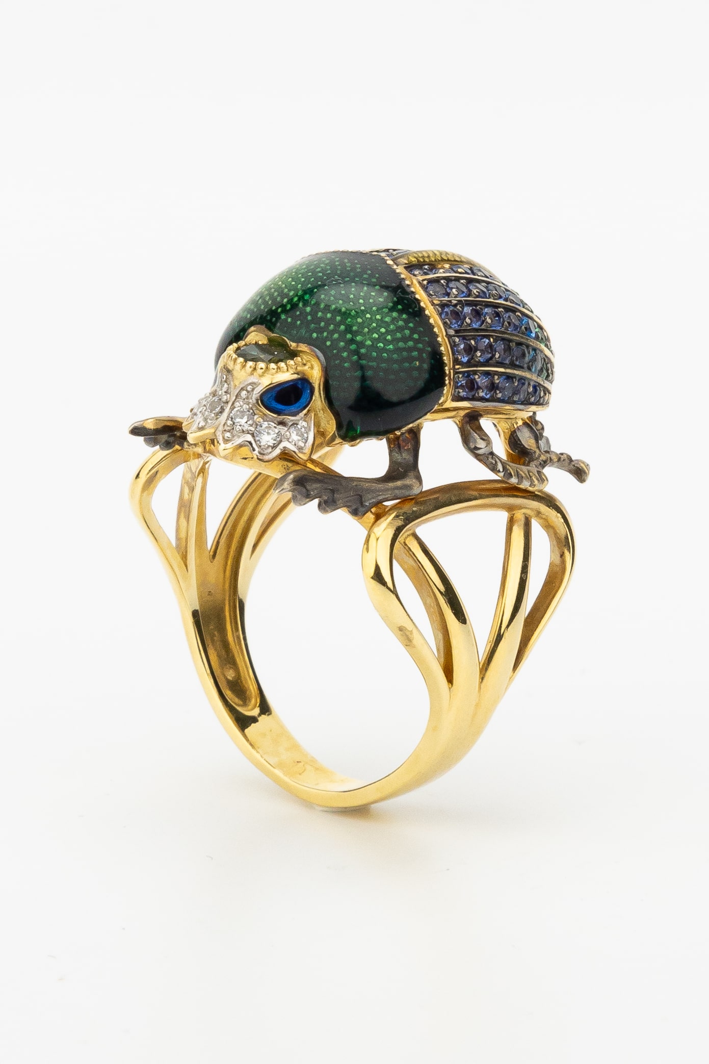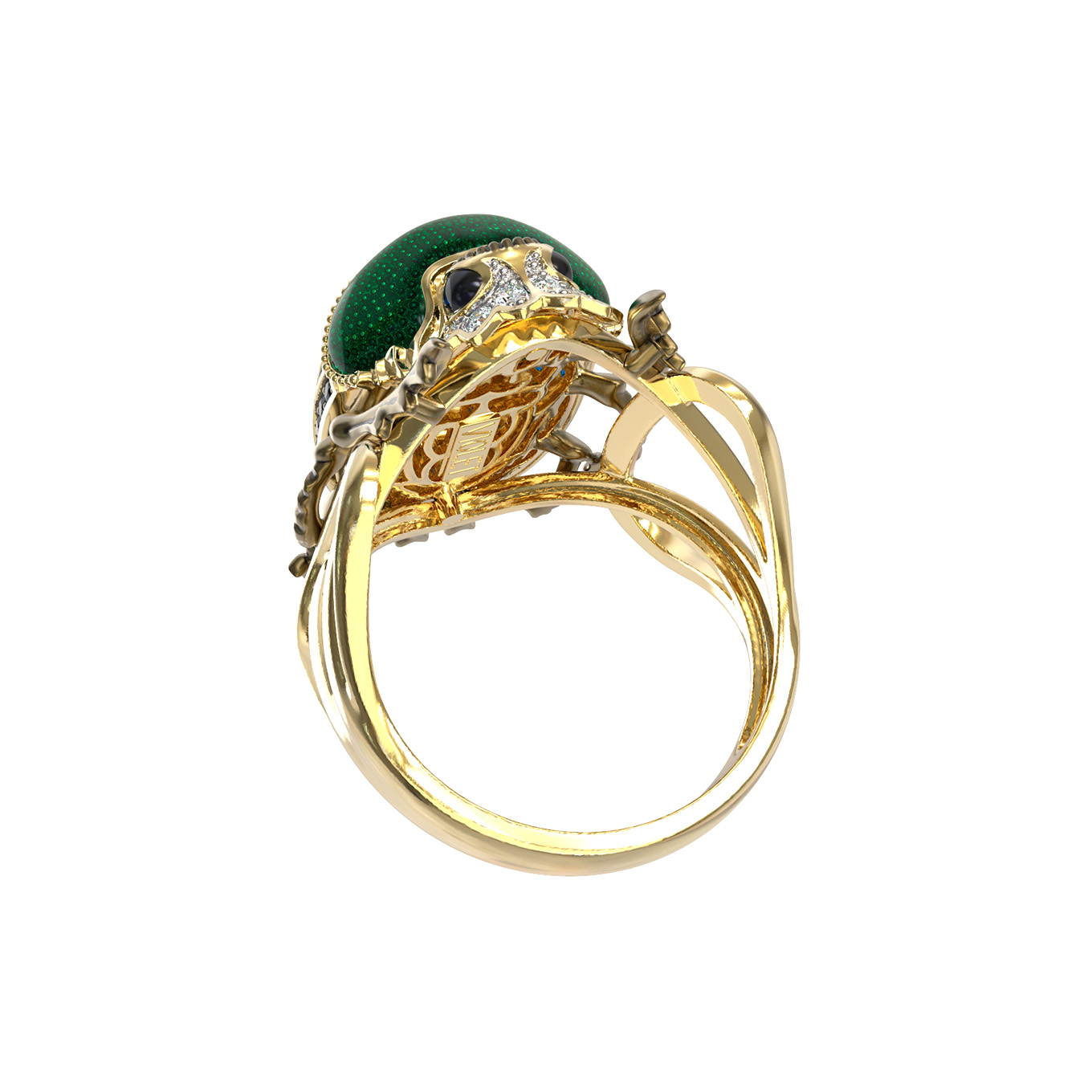 Кольцо из лимонного золота 585 пробы c эмалью, фианитом и турмалином