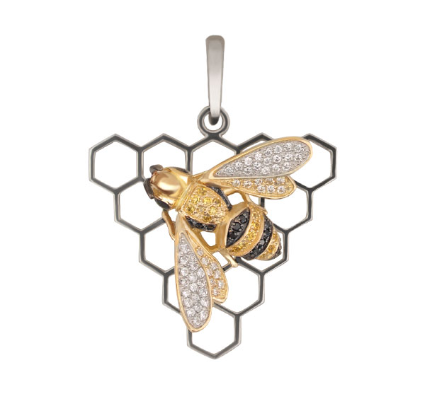 Подвеска из белого золота 585 пробы c эмалью и фианитом