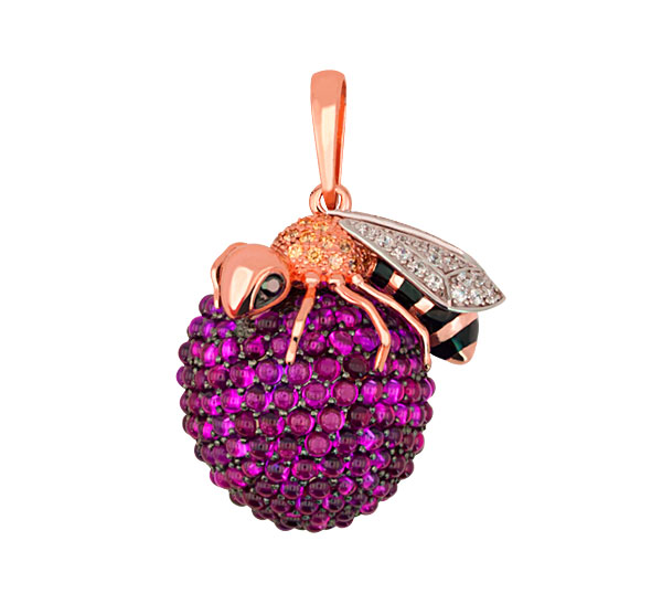 Подвеска из красного золота 585 пробы c эмалью и фианитом