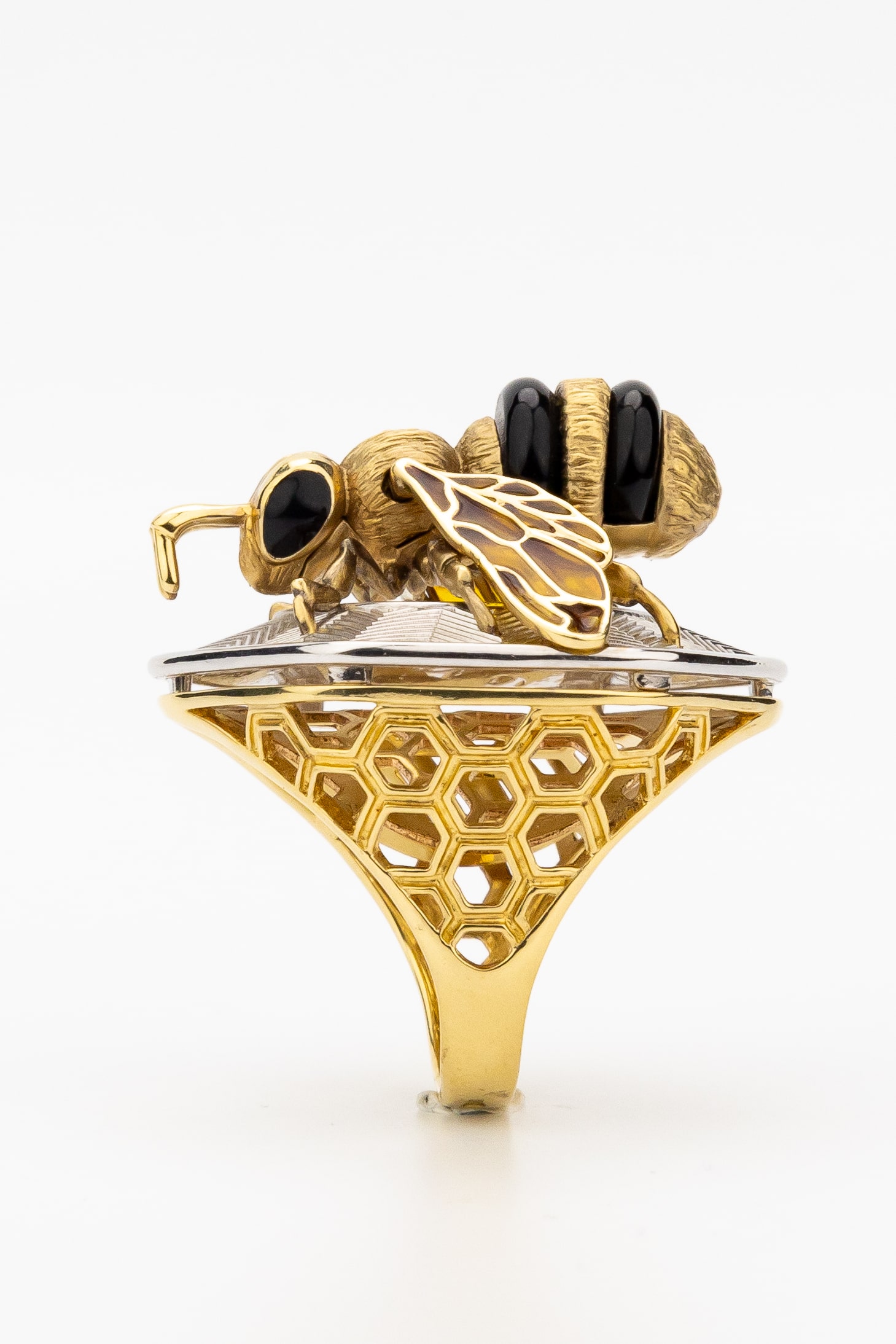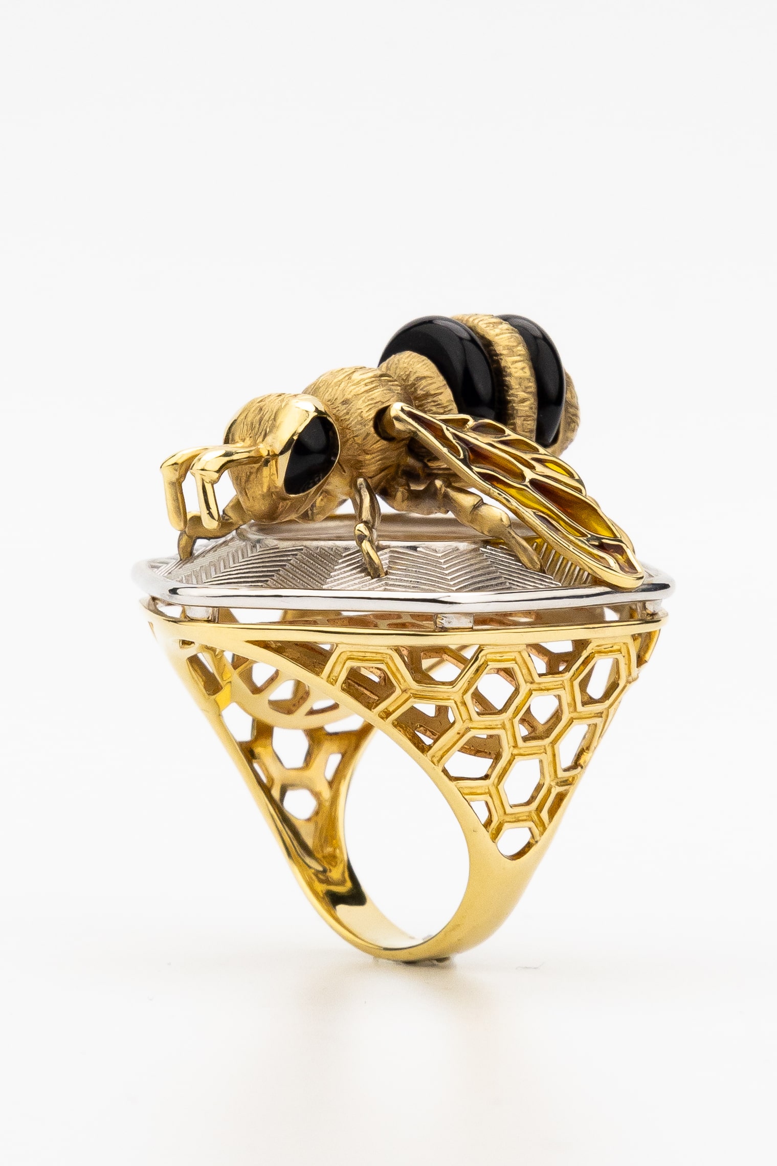 Кольцо из лимонного золота c эмалью, ониксом и эмалью